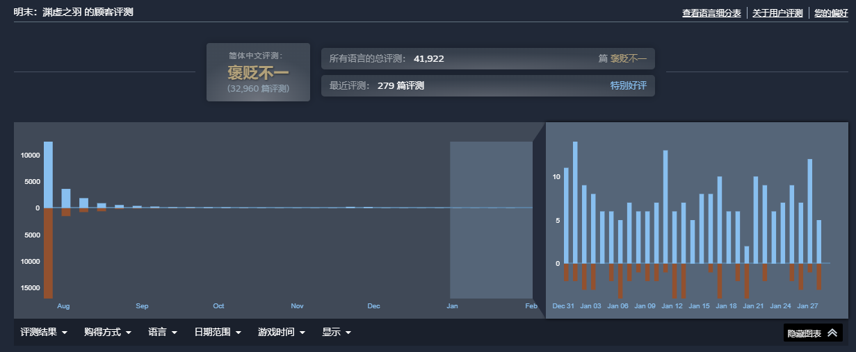 (《明末:渊虚之羽》的Steam评价情况)