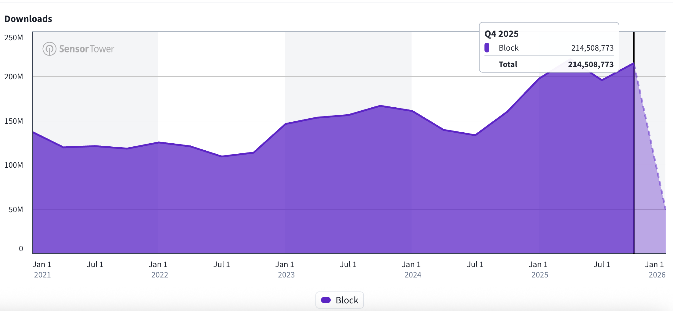 《Block Blast》是这一代的代表作。它并不是第一个方块解谜游戏,但它把这套做法执行得非常彻底。从2025年初开始,它的月安装量长期维持在3000万以上,证明这种思路在大规模市场中是跑得通的。