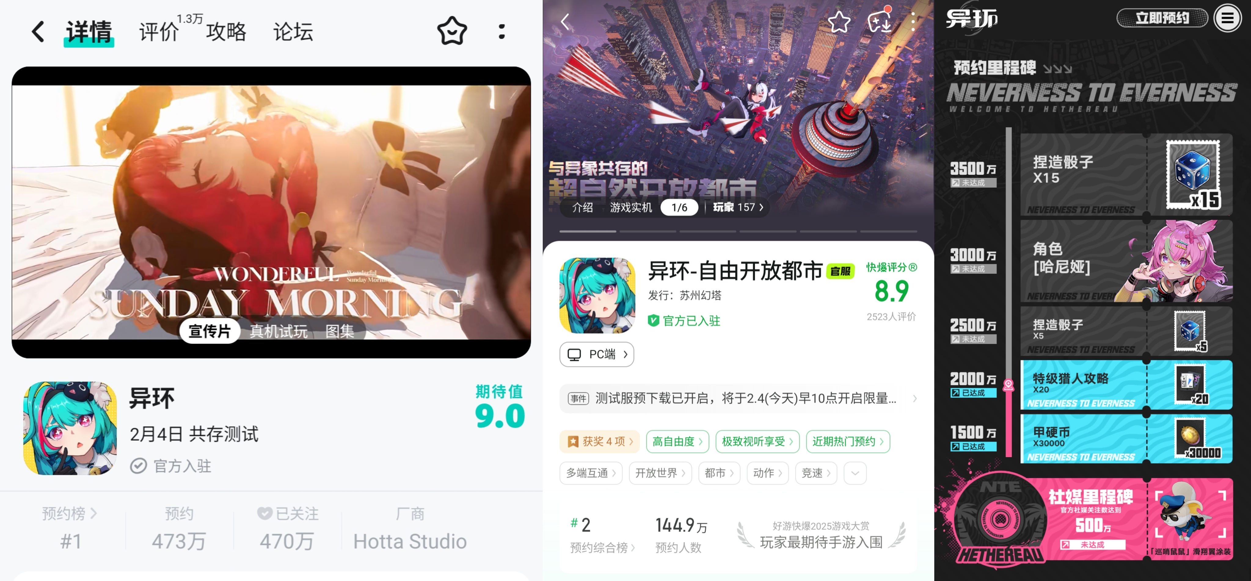 身位领先所带来的先发优势,在数据层面也已经开始初步凸显。截至目前,《异环》在TapTap的预约量已突破470万,官网预约更是跨过了2000万的门槛,且期待值始终维持在9.0分的高位。在B站等社群平台,关于三测的讨论热度与二创视频数量也呈井喷之势。