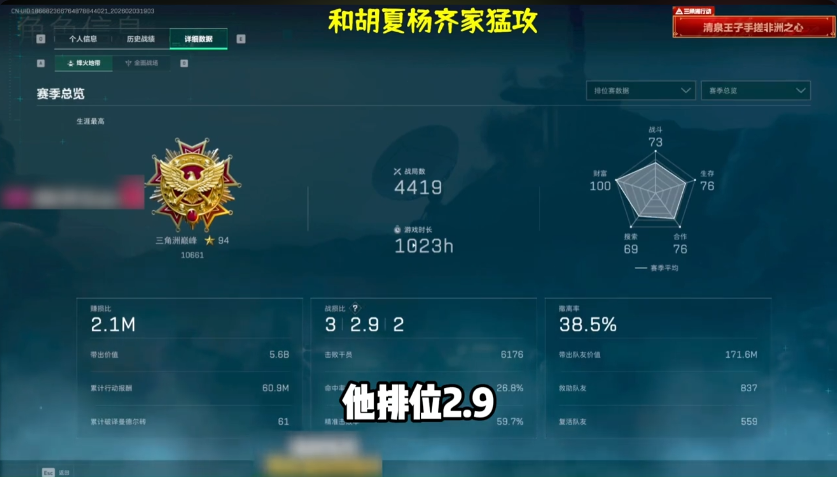 而其中最让我感到惊讶的是,许多明星对《三角洲行动》的熟悉程度甚至不亚于一些游戏主播。就拿音你而“红”队的胡夏举例,在此前布鲁斯杨齐家胡夏的一次联动直播中,布鲁斯发现胡夏的游戏时长已经来到了1200小时,其排位绝密KD更是来到2.9,相当于可以在《三角洲行动》绝密地图中单人灭队的水平。