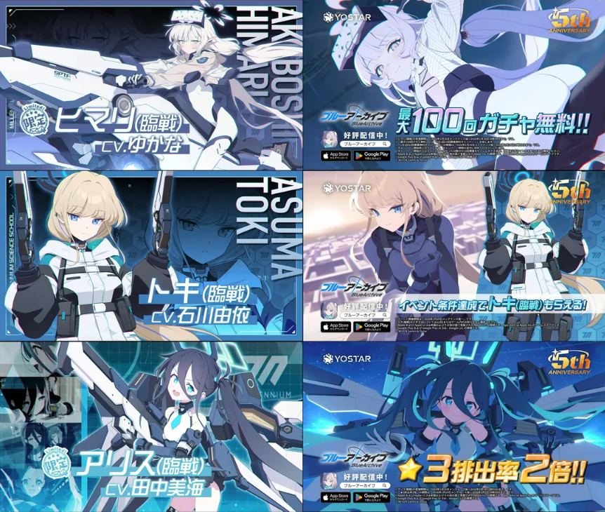 一月份,广受玩家欢迎的二游《蔚蓝档案》开启了5周年庆典。其不仅在游戏内为玩家提供了首周100抽以及卡池爆率翻倍等福利,还在日本全国各地举办了诸如集邮、DJ巡回演出等线下活动,收获了较高的曝光度与讨论度。