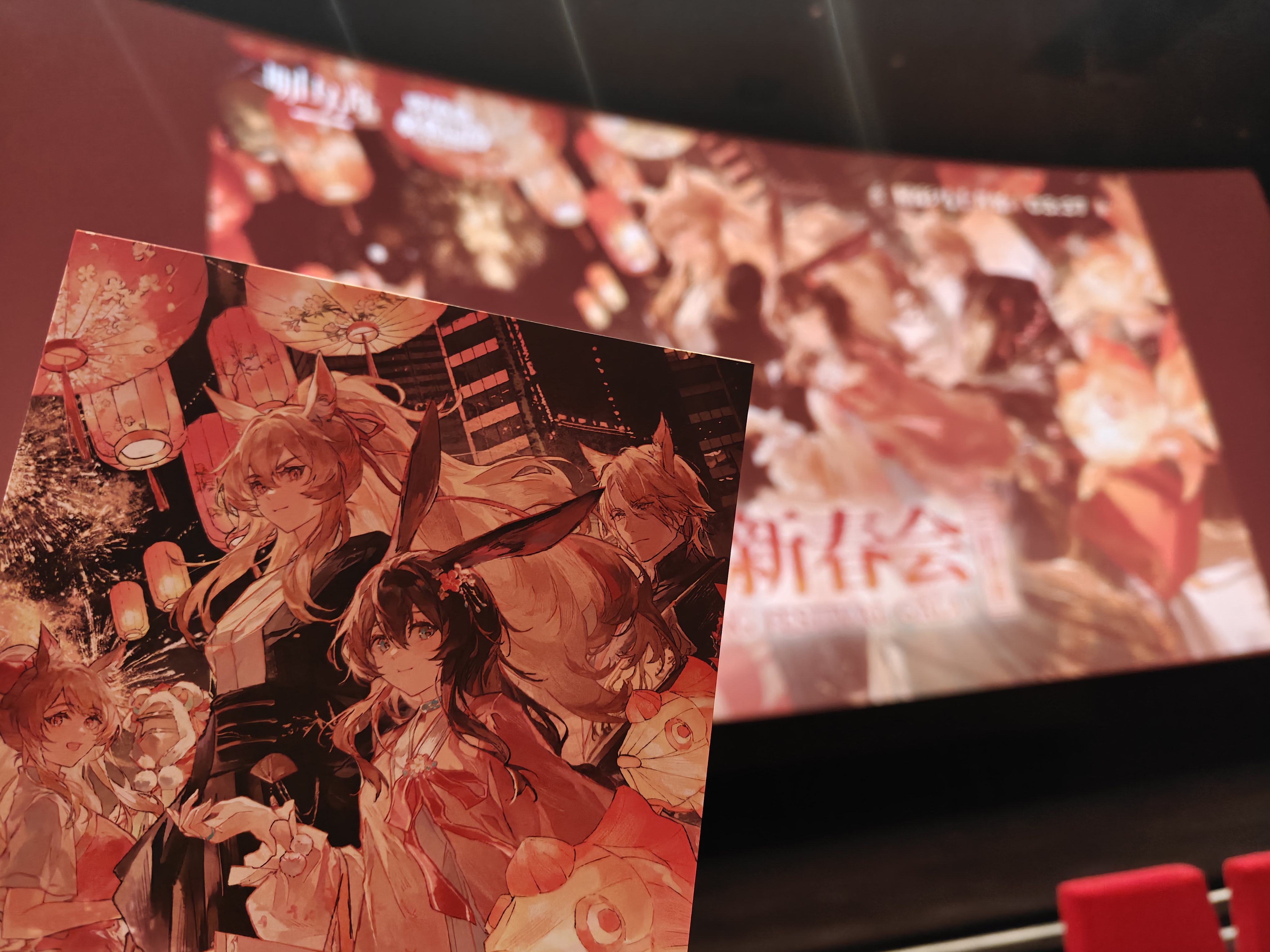 今年的明日方舟新春会依旧将线下观影地点定在了上海影城1号厅。不得不说,这场地确实合适组织这样一场玩家线下活动——巨型天幕滚动播放往期节目单,楼下宽阔的大厅布置了方舟新春会主题的打卡点,楼上有着满足千人观影规格的影厅,来到现场的玩家同好可以尽情交流互动……说来奇怪,明明这种包装规格对一场以玩家二创为主的节目来说堪称豪华到夸张,但仿佛置身于方舟ONLY展会一般的氛围,又让我感觉极其熟悉。