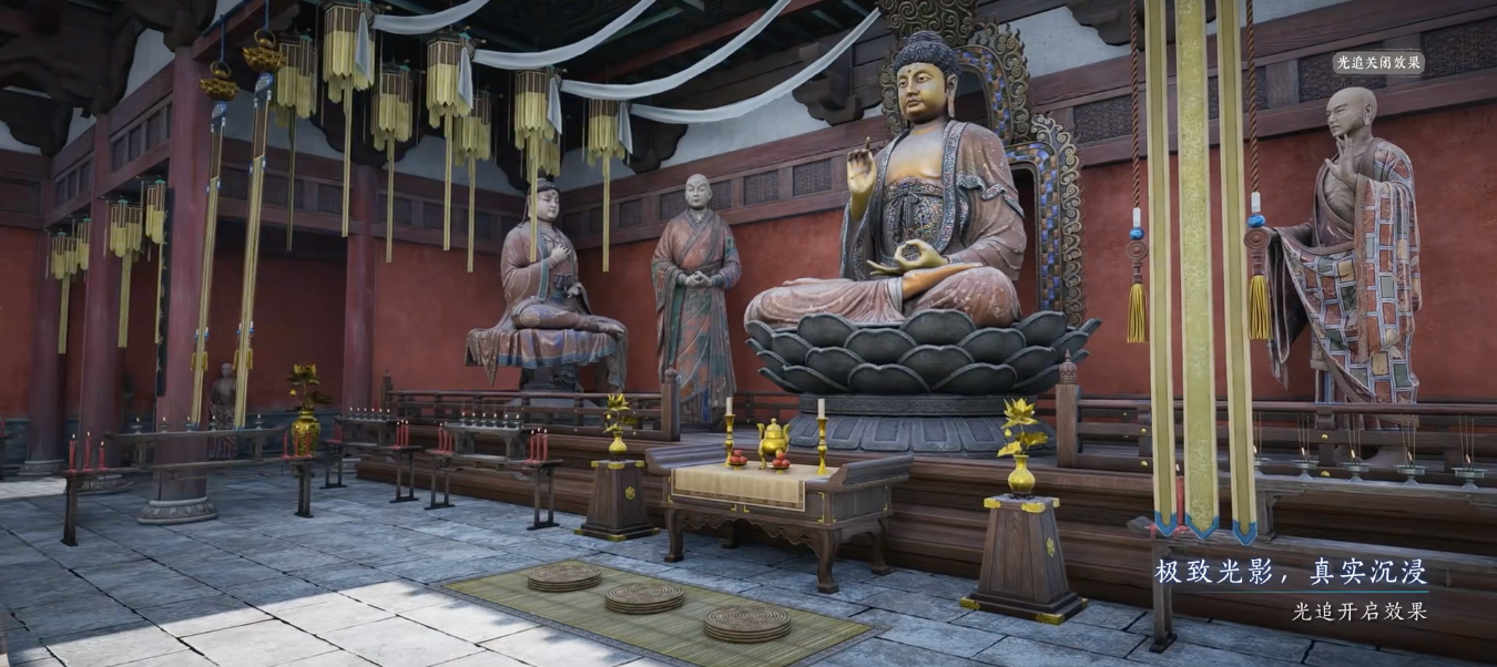 比如,山林之间的光影有更强的对比度,让场景有更强的体积感。