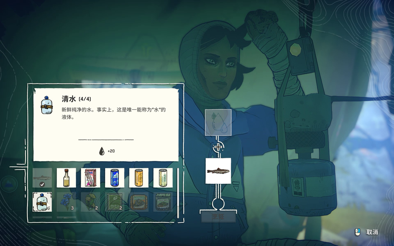 在帐篷内,玩家可以将采集到的草药与清水烹煮成恢复体力的热汤;或是包扎因持续摩擦而破损的双手;更可以通过睡眠来度过恶劣的天气或恢复精力,以最好的状态迎接下一段路程。