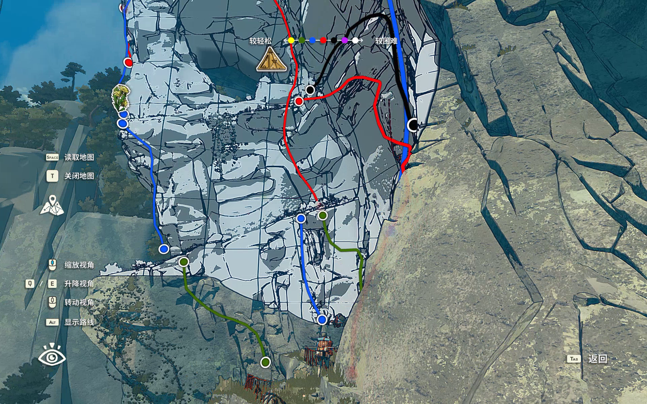这也使得路线规划成为其核心乐趣之一,《孤山独影》提供了一种俯瞰视角观察山体形态的方式,用于玩家自主分析岩壁的纹理、坡度与潜在支点,从而规划独一无二的攀登路径。