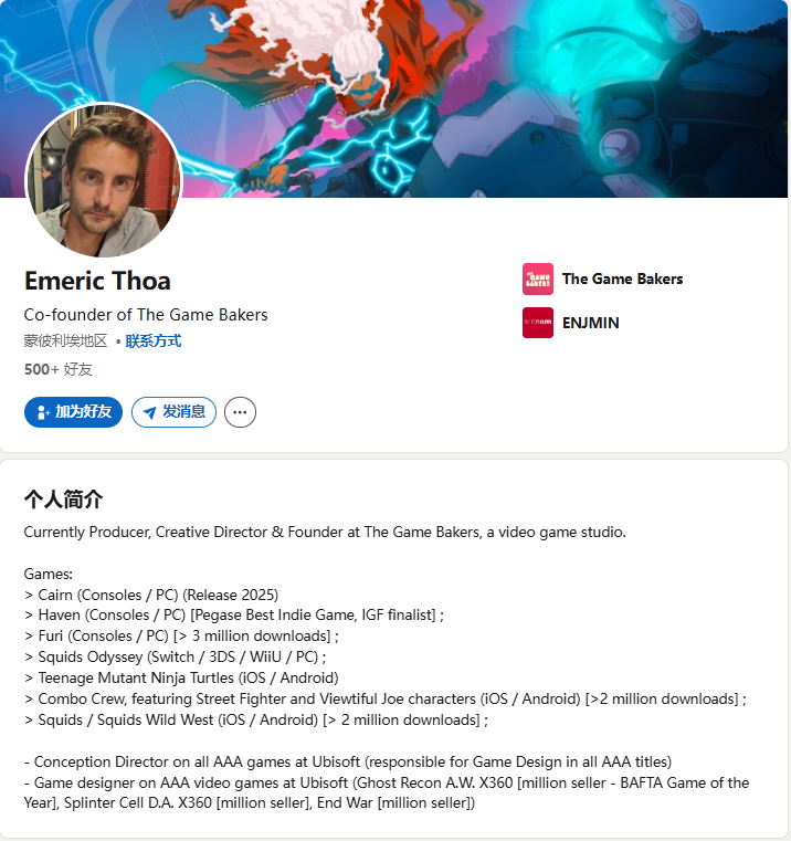他们都曾在游戏行业积累了深厚经验,其中,Thoa在育碧担任游戏设计总监,经手过《细胞分裂》及《终结战争》等百万销量项目;