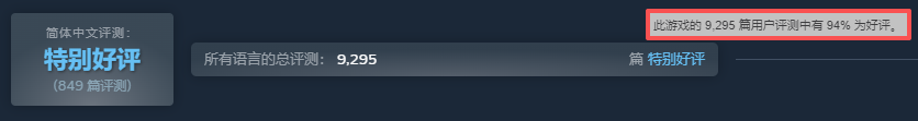 正式发售后,游戏在上线首周内销量便突破了30万份,9000多名玩家给出了94%的好评率。