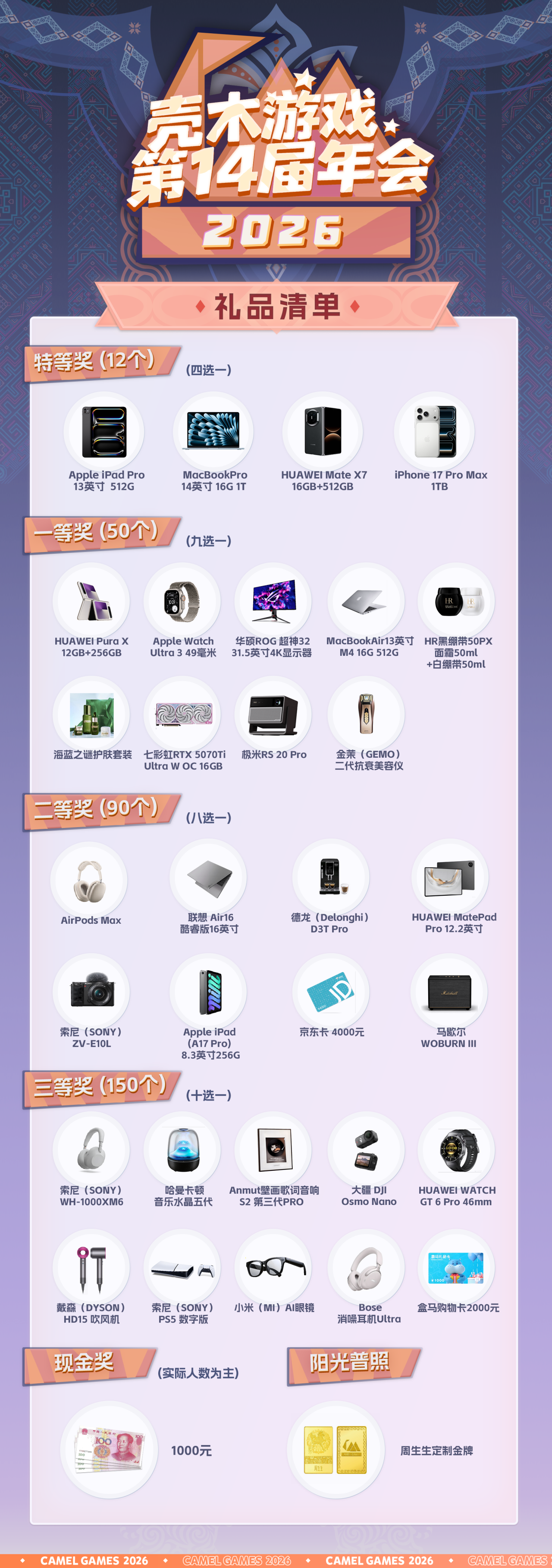 而就我们这段时间的观察,结合今年各家晒出的年会清单来看,游戏圈的手笔越来越“土豪”,甚至还有一些新的趋势和独特的玩法。(本文内容基于2025年末至2026年初各游戏公司年会公开信息及行业讨论综合盘点,具体奖品设置以各公司实际执行为准。)