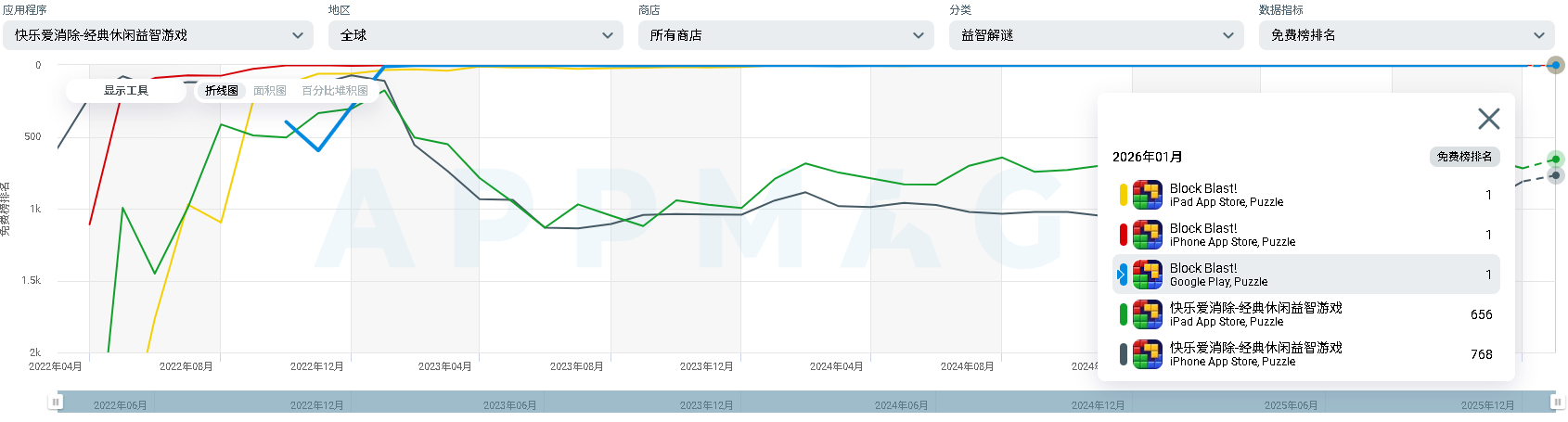 在2026年1月8日,Hungry Studio宣布旗下休闲益智手游《Block Blast!》达成了7000万日活、3亿月活的历史性成绩。