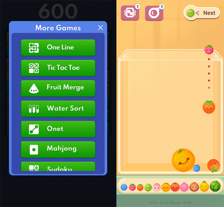 在这三个主要模式之外,《Block Blast!》还在游戏中加入了诸如一笔画、数独、“合成大西瓜”等广受市场认可的休闲玩法。