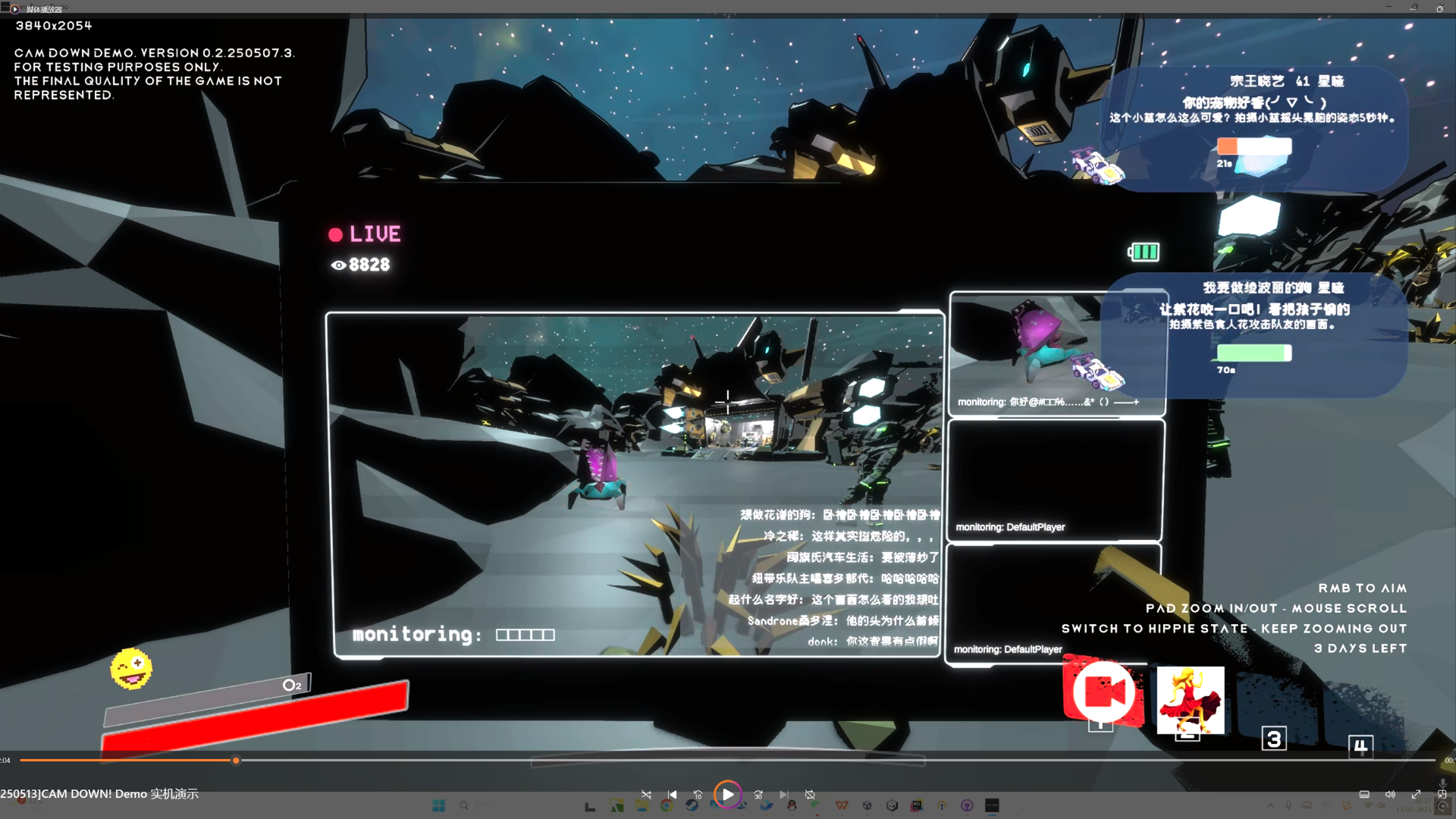 所以在《CAM DOWN!》里我们也做了类似设计:每个玩家其实都在做一场实时直播,一旦有人阵亡,他的画面会立刻黑掉,就像一个频道被突然掐断,只剩下其他人的画面还在继续。