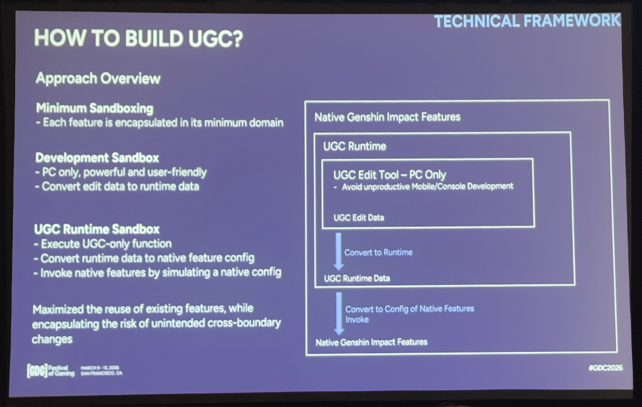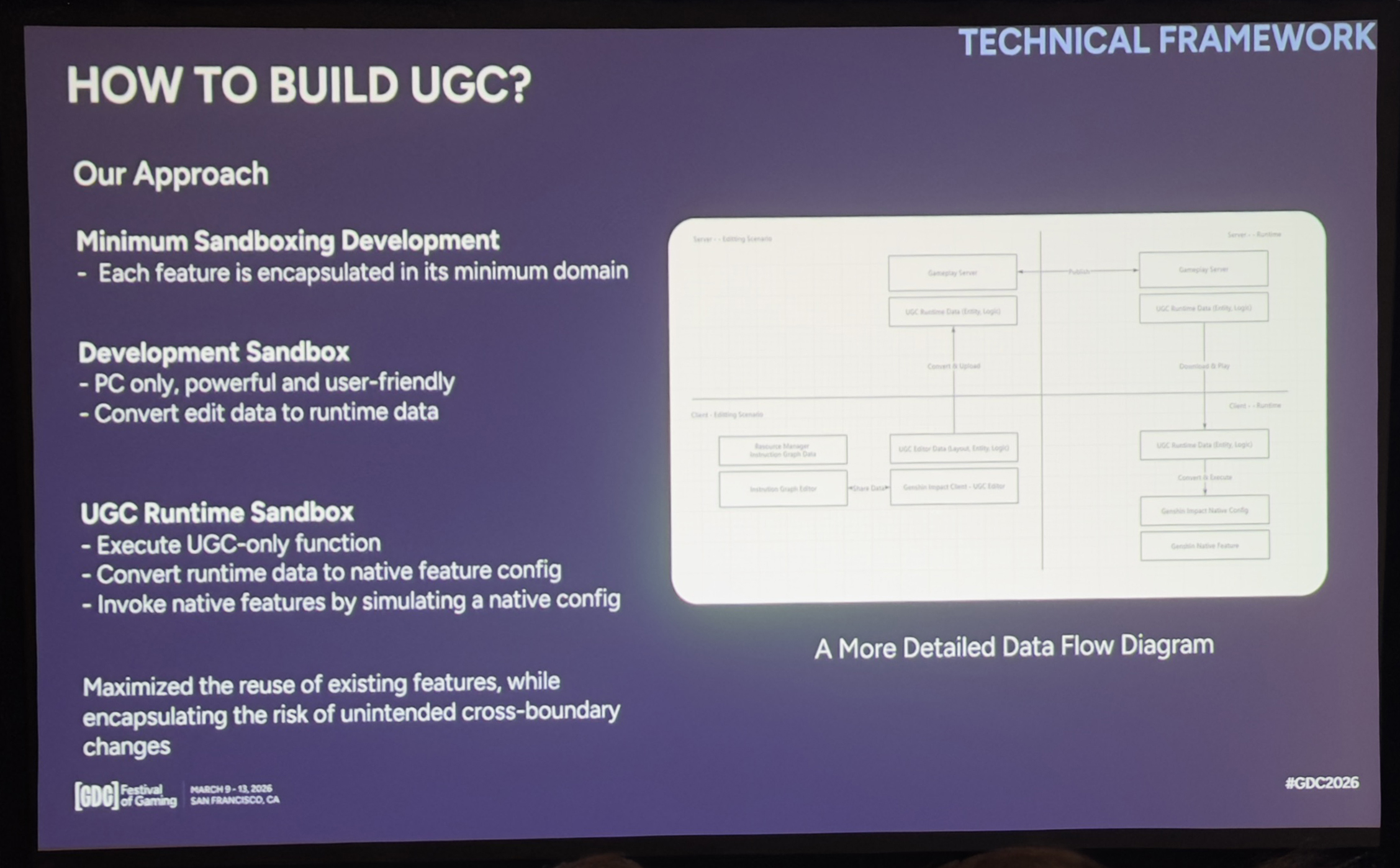 作为一款运营已经超过5年的产品,米哈游为什么会突然决定为《原神》推出这么一个UGC模式?背后又存在怎样的开发理念和长线目标?近期在美国开幕的GDC2026大会上,来自原神程序团队的宁锌就以“在《原神》中实现内置多人用户生成内容体验”为主题进行了一场演讲分享,回顾了关于「千星奇域」框架搭建的诸多技术细节,以及开发过程中面临的挑战与难点。