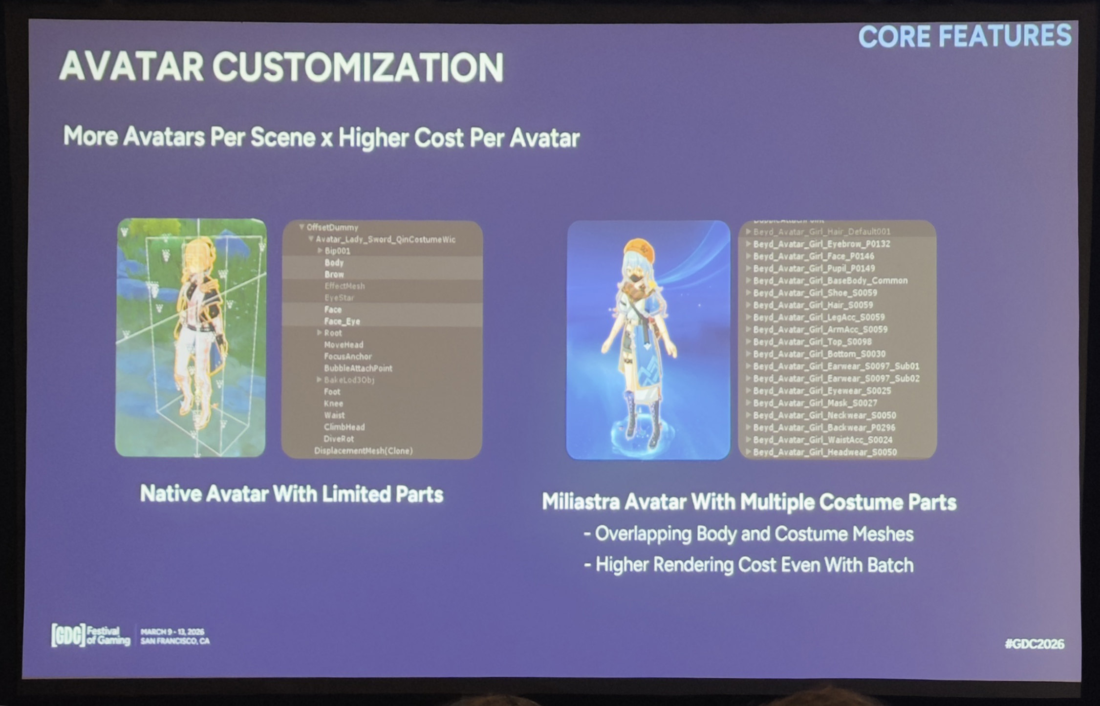 通过重叠消除、网格合并、蒙皮优化,再加上LOD和可见性管理,我们把每个化身的渲染效率提升到了接近原生角色的水平,显著降低了CPU和功耗,让移动端也能承载大型社交场景。