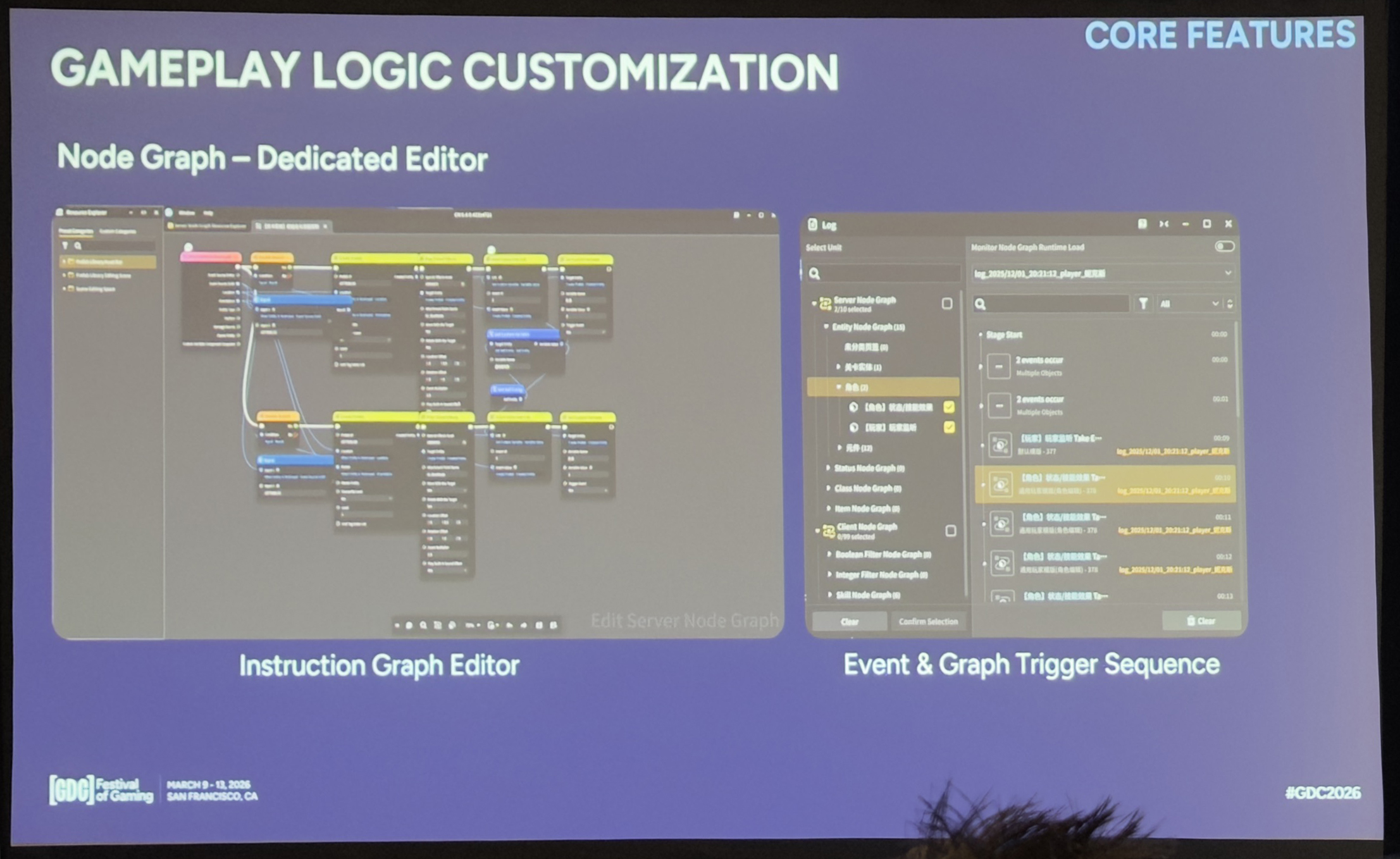同时,我们为节点图做了一个可视化编辑器,让创作者能直观地看到控制流和数据流转。而且我们把编辑器做成了一个独立于主客户端的应用程序,这有助于保持原生代码库的干净,也为诸如执行日志、图跟踪、数据检查、性能优化分析等强大功能预留出了空间。实践证明,这笔投入很值,因为如果没有这些工具,调试UGC逻辑对创作者和支持团队来说都极其耗时。