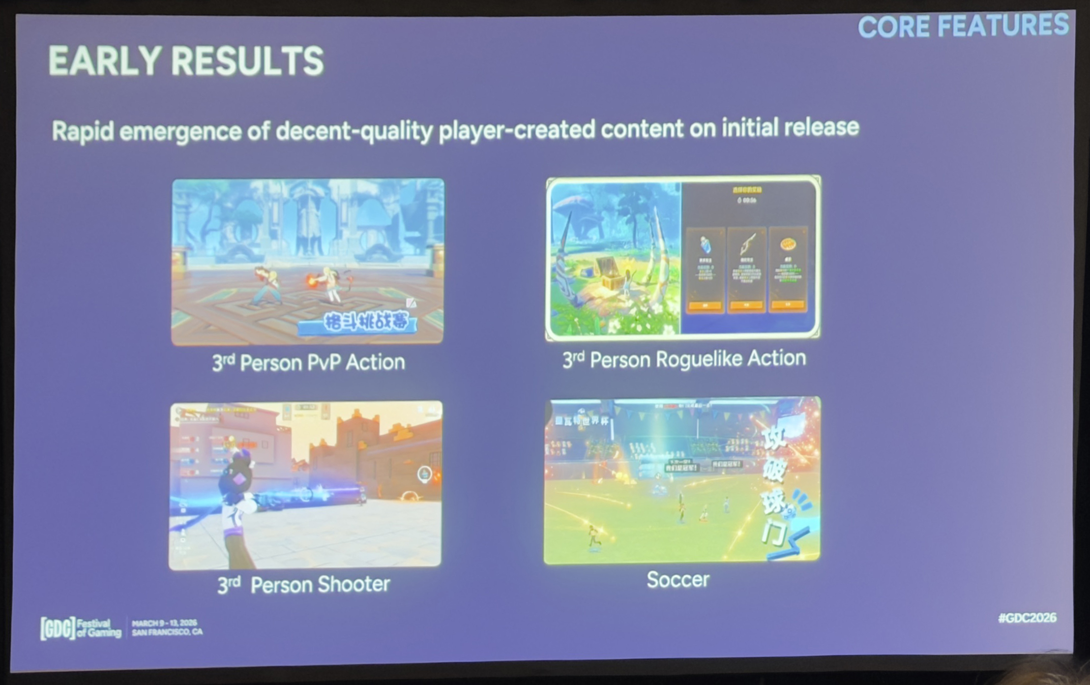 项目上线后,很快得到了正面的市场反馈:创作者们迅速做出了“自己的游戏”——第三人称动作、PvP、体育竞技、类似射击的玩法等等。这种快速涌现说明我们在激发创作者表达欲,工具易用性,开发流程可迭代性等环节都找到了一个不错的平衡点。