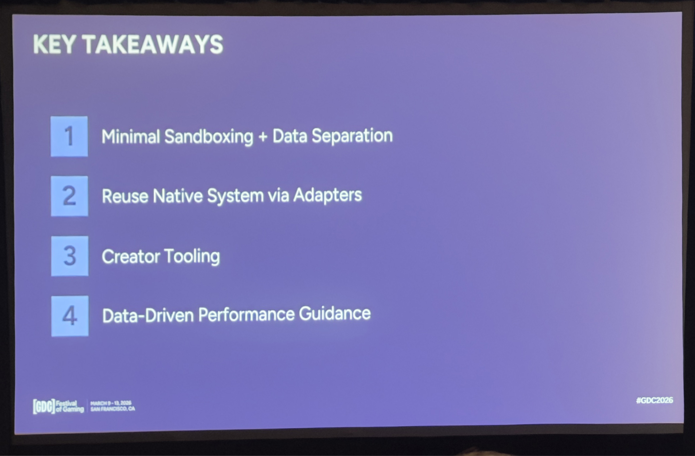 最后,我想用贯穿这个项目的一个信念来收尾:游戏行业的未来,必将由玩家驱动——他们不仅是消费者,更是创作者。我们身为工程师要做的,就是为他们提供强大、安全且可扩展的工具,让创造力得以尽情绽放,同时不牺牲稳定性和性能优化。感谢大家的聆听,下面开始提问环节。