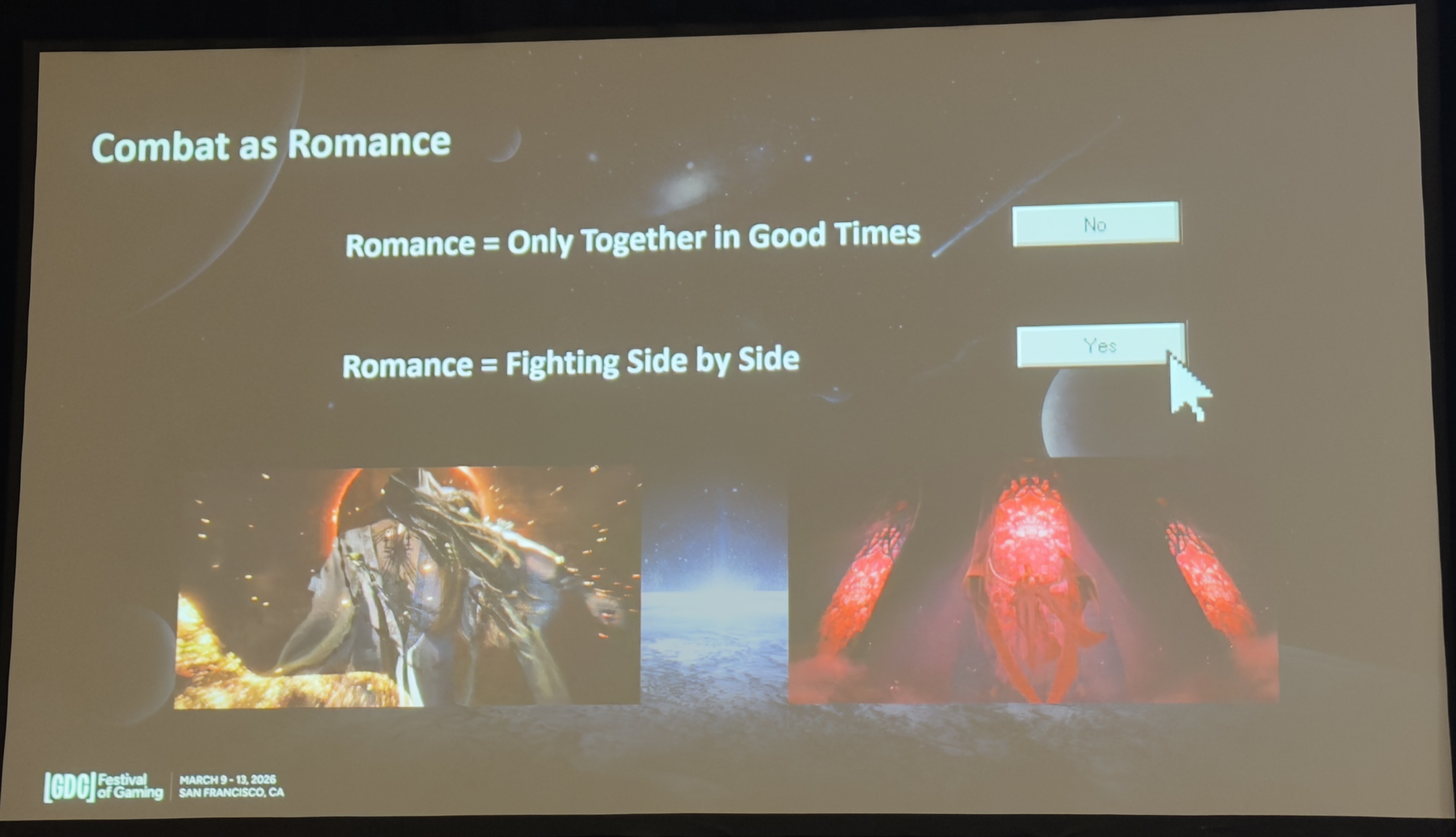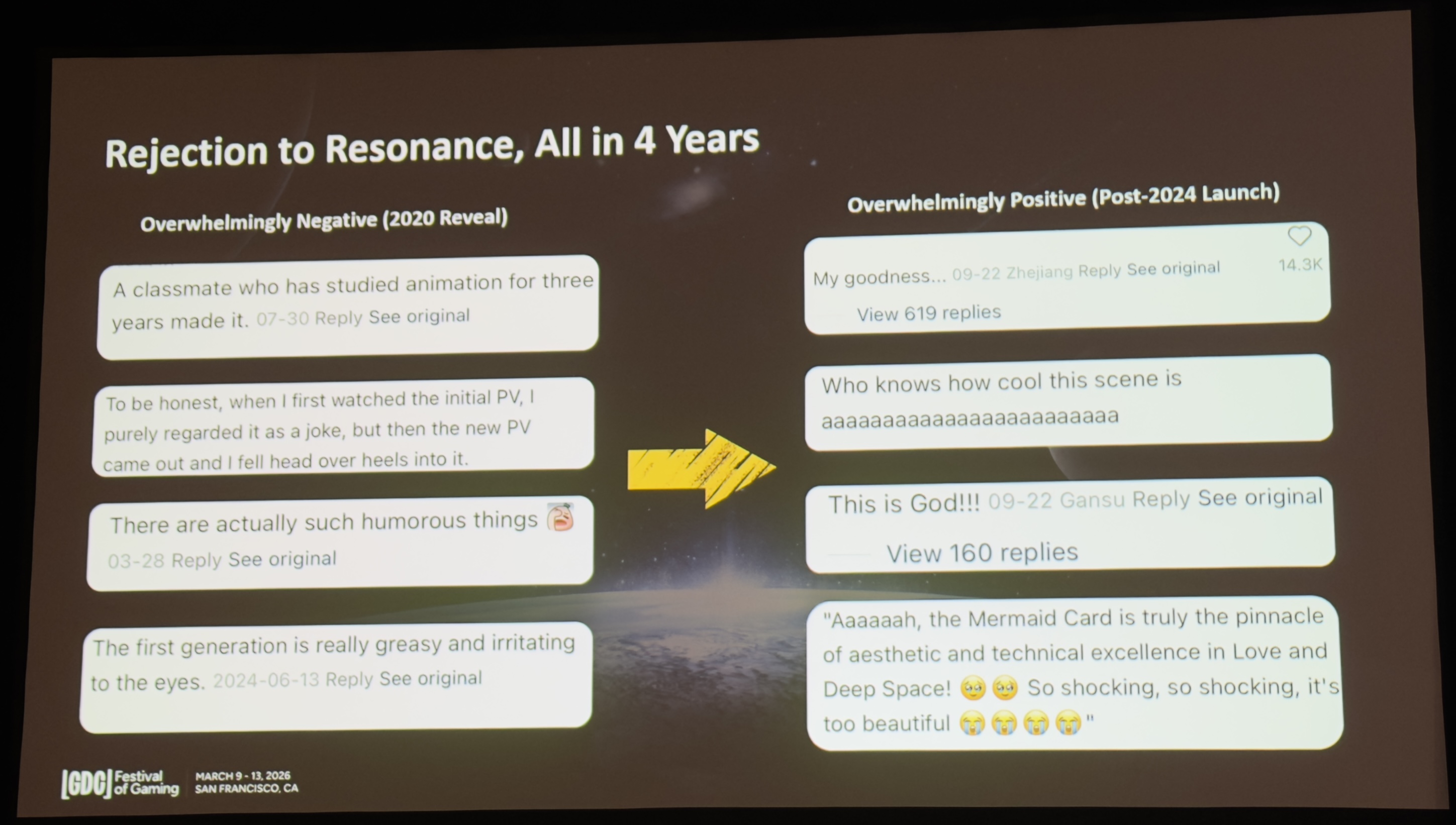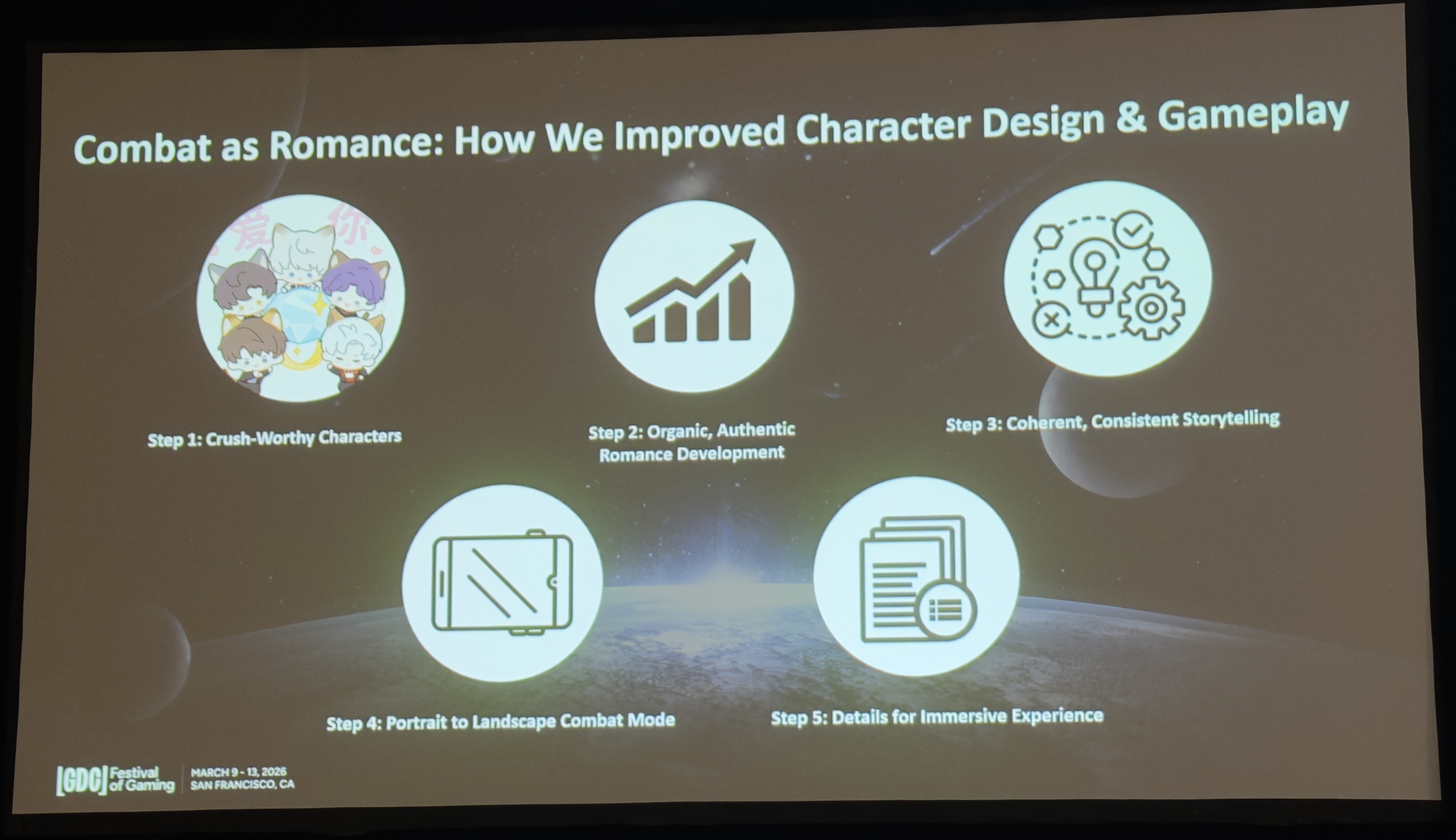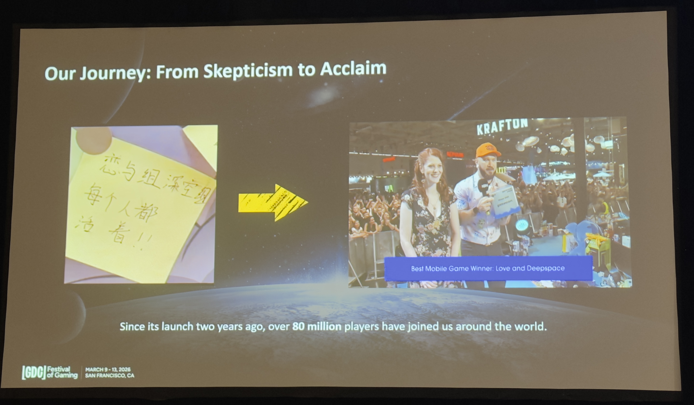 但如果把视线拉近,会发现叠纸真正想回答的,从来不是“乙女游戏能不能做战斗”,也不是“恋爱游戏还能往哪里卷”。在GDC2026现场,《恋与深空》制作人栗子反复谈到的,其实只有一个词:浪漫。