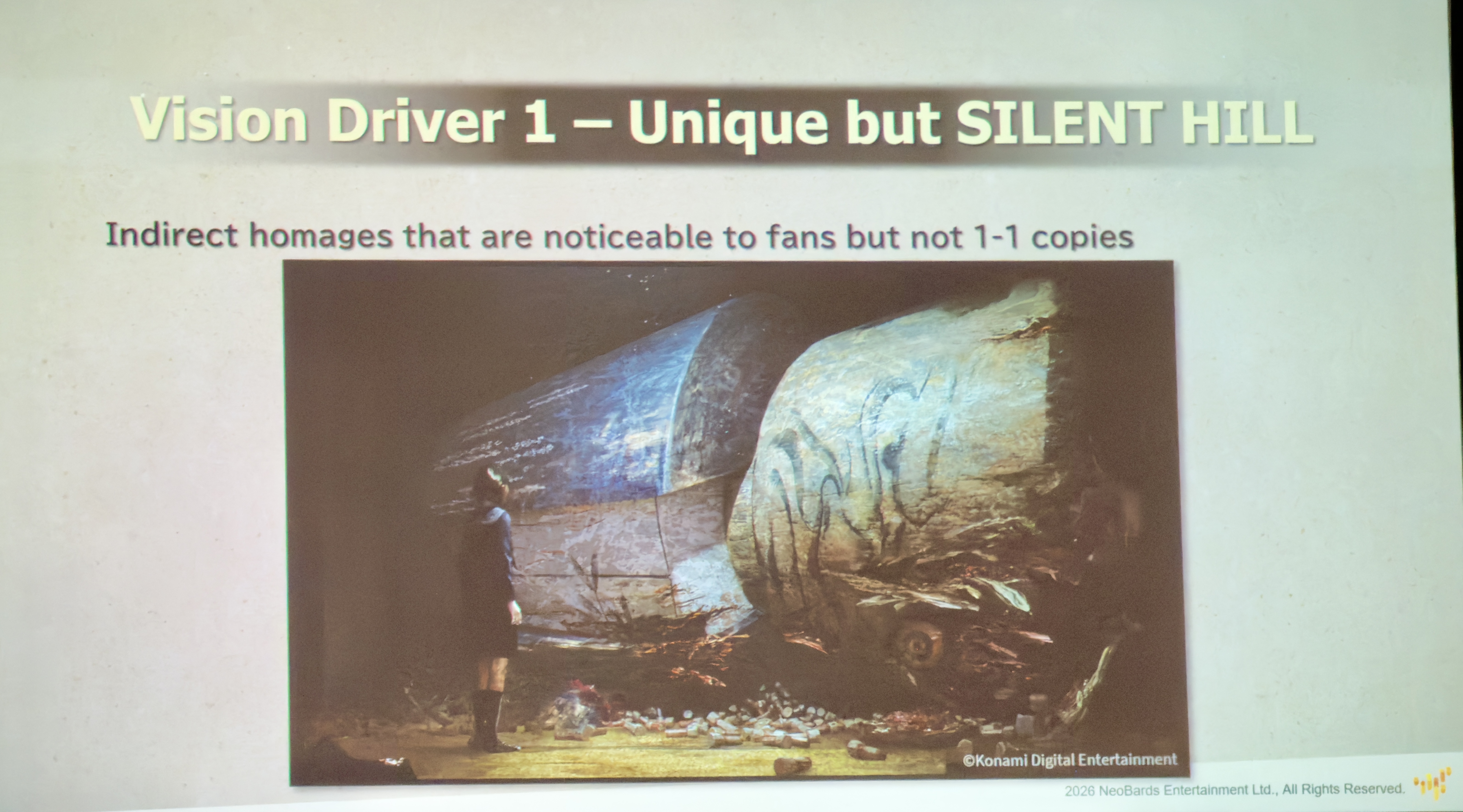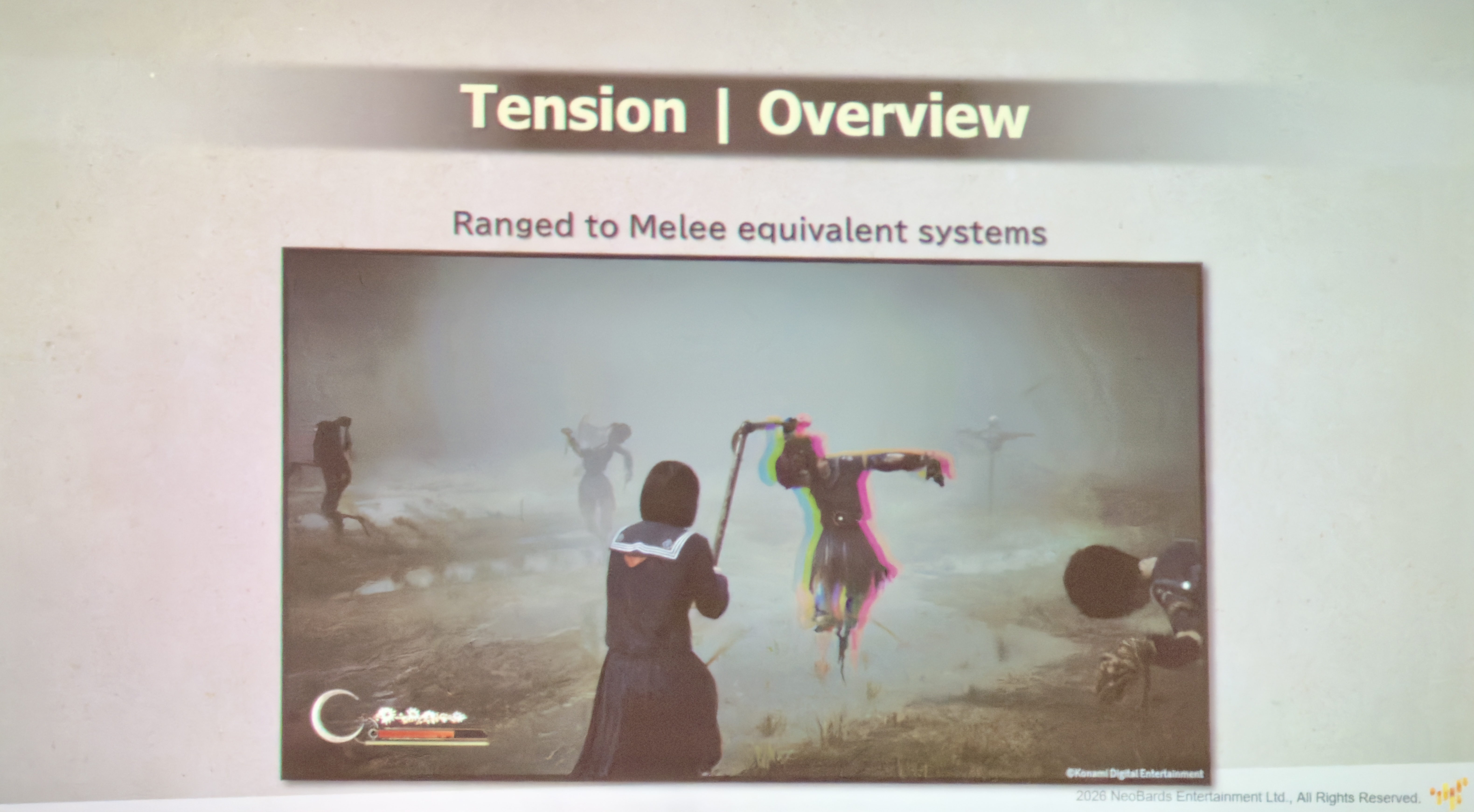 在GDC2026的讲台上,《寂静岭f》主创团队:来自Neobards Entertainment(泥巴娱乐)的创意总监Al Yang(楊承圃),分享了题为“《寂静岭f》:制作一款‘纯近战’恐怖游戏的挑战”的演讲。