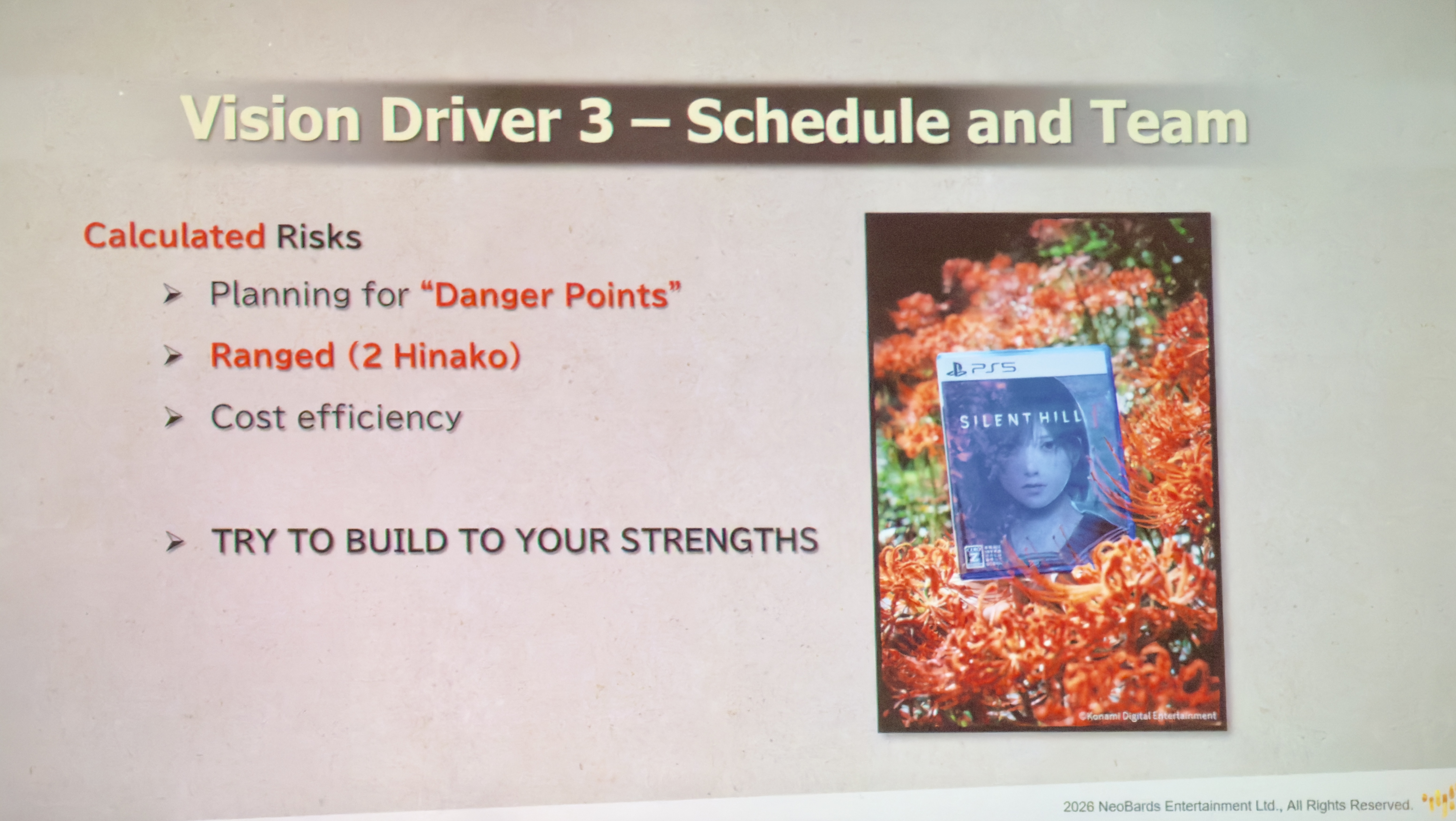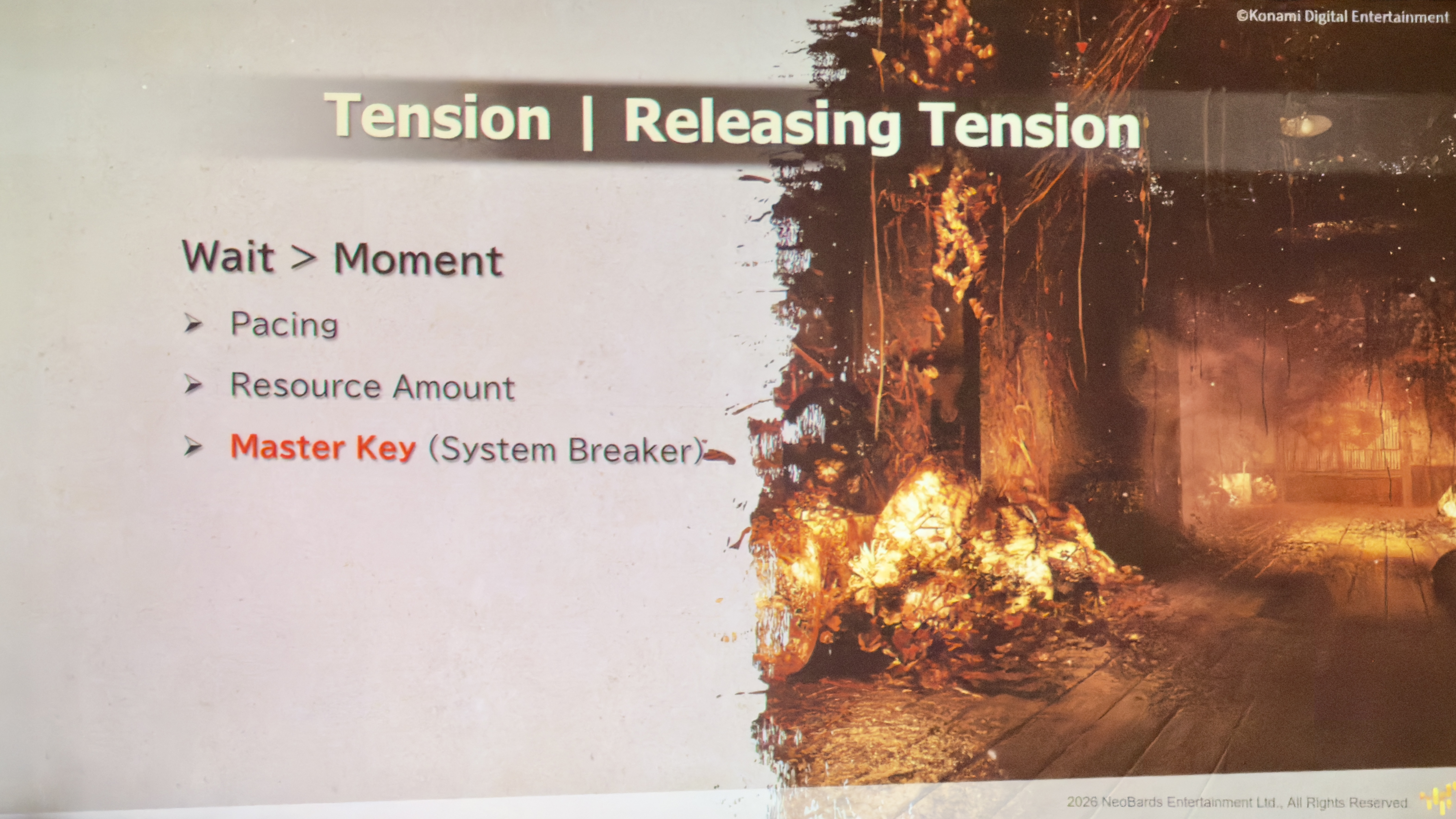 《寂静岭f》是其参与的最新作。在这场演讲里,楊承圃分享了团队如何通过调整或创造新系统以保持战斗节奏,并讲述了他们为何有意将《寂静岭f》设计为系列首款“纯近战”作品。