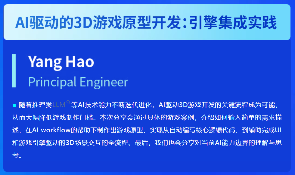 一来,市面上现有的AI工具虽然已经能生成简单的小游戏,但大多停留在Web端或2D层面,难以与Unreal、Unity等专业引擎打通。这也导致AI和3D游戏之间存在天然的技术隔阂。
