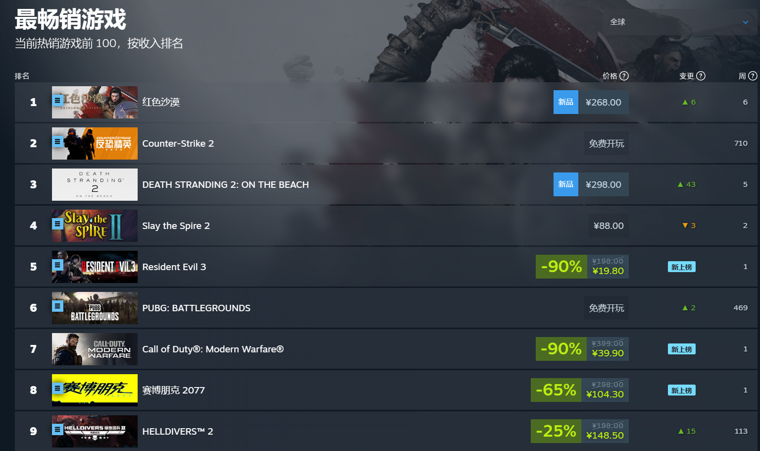 但不论发售前的舆论场如何,至少《红色沙漠》的声量是有了,仅在预售阶段,它就来到了Steam全球销量第一,压过了前阵子大热的《杀戮尖塔2》以及刚刚登陆PC的《死亡搁浅2》。