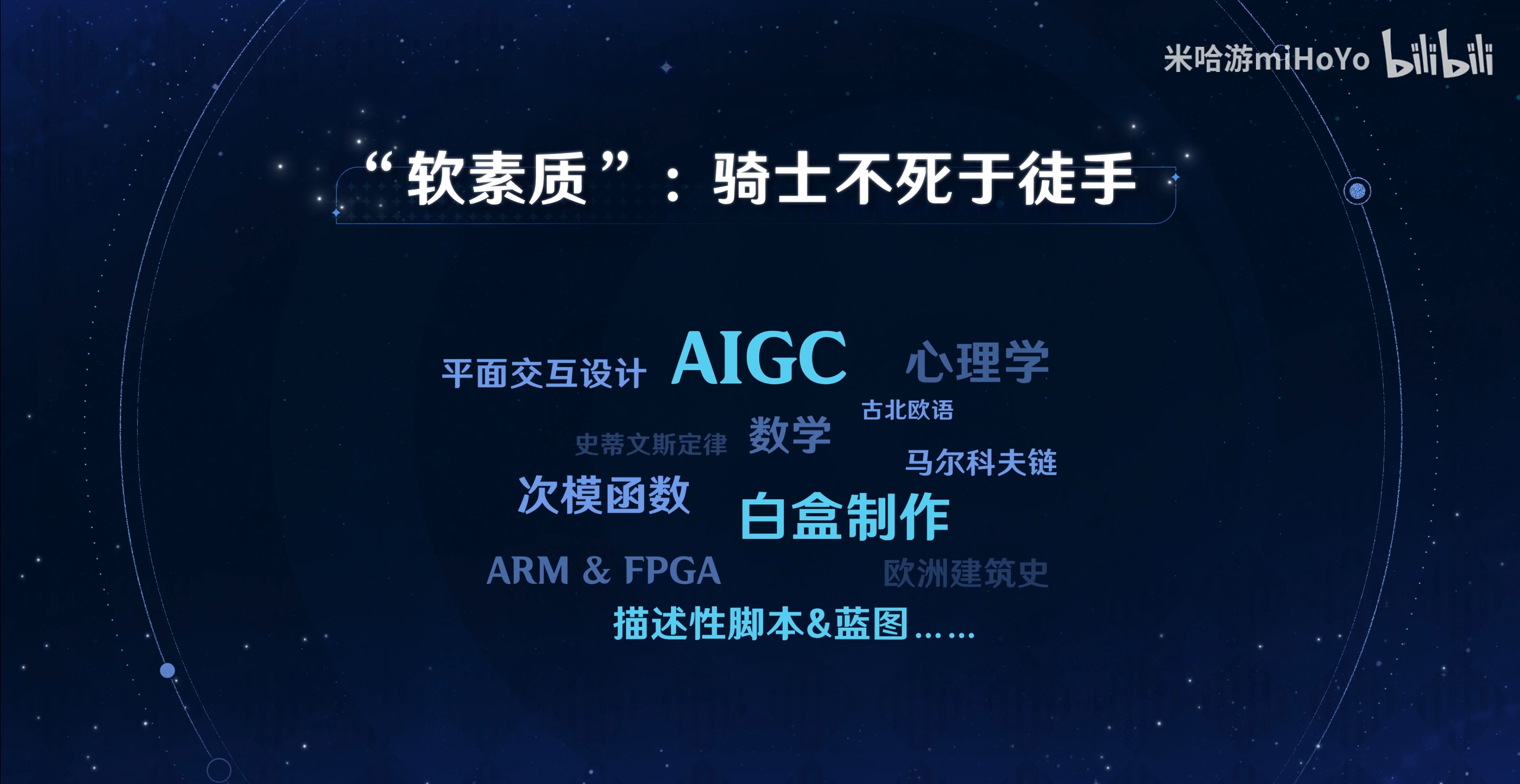 其中,关于学科背景,鸡哥引用了“骑士不死于徒手”的概念,去讲创作环节可能会运用到来自任何领域的学识;对于硬技能的需求,以“从扎马步开始练起”去讲技能学习、团队磨合。