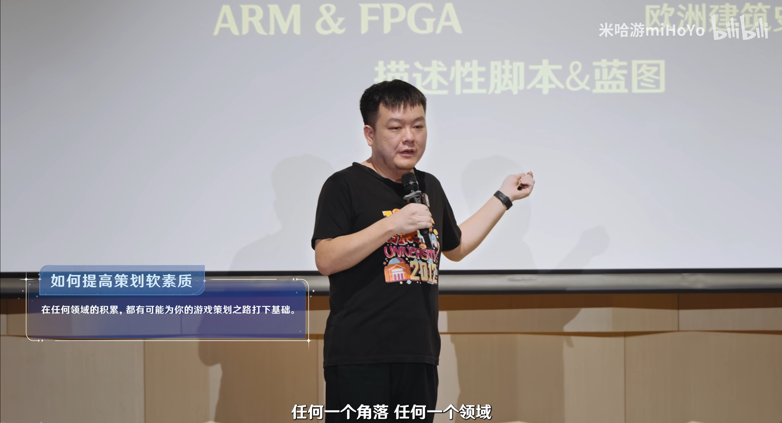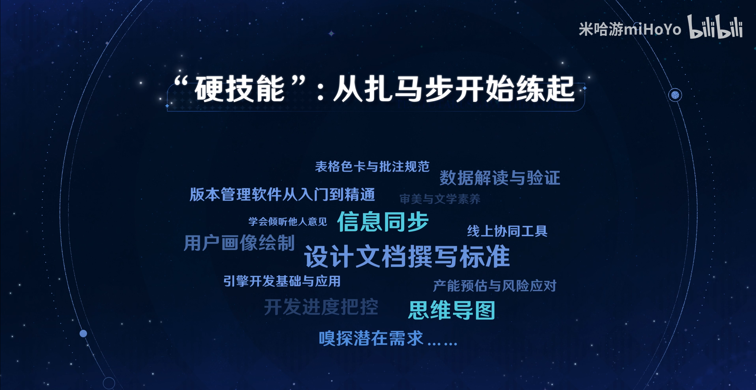 往年大家可能有听过米哈游策划的一些分享宣讲,有的人会聊团队在研发过程中发生的一些有趣片段,又或者会如数家珍地去讲一些自己的游戏研发分享。
