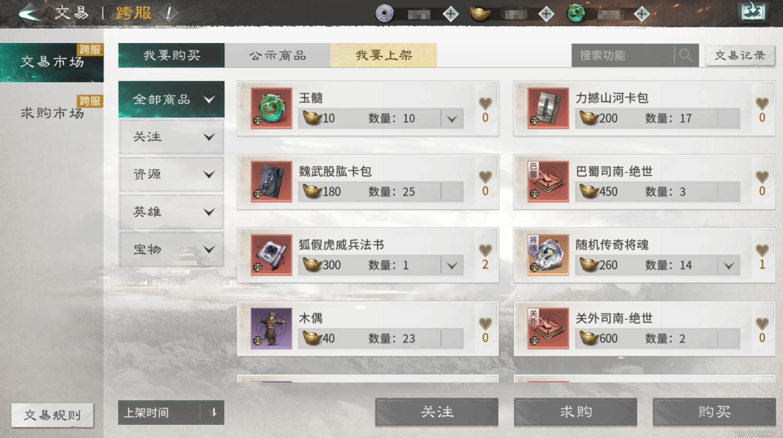5、交易行在一段时间后会自动转为跨服交易行