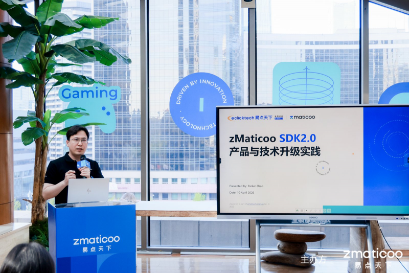 活动现场的一大亮点,是zMaticoo SDK 2.0 的正式发布。zMaticoo SDK 产品研发负责人Parker重点介绍了 SDK 2.0在广告加载、广告展示、点击模块及隐私合规等方面的升级能力,并结合开发者实践效果,系统阐释了产品从底层效率优化、展示体验提升到转化表现增强的完整思路。他表示,技术产品不应只停留在“工具”层面,而应进一步升级为驱动业务增长的“增长引擎”,真正服务于开发者的商业目标。