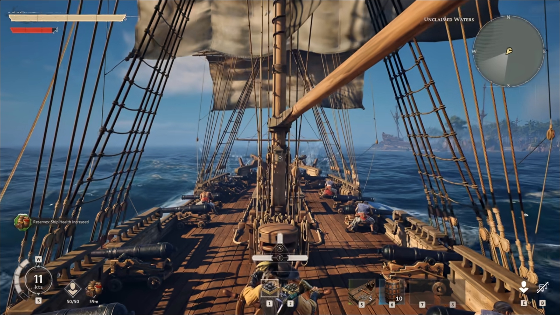 值得一提的是,作为一款生存建造类海盗游戏,《风启之旅》并没有选择常见的PVP玩法,而是以PVE为核心,船上负责杂活的船员,均为NPC操控。这意味着玩家无需被迫联机当“苦力”,只需做好一名船长,专注于操控战船、把握战斗节奏,剩下的厮杀与杂活,NPC船员都会妥善处理。