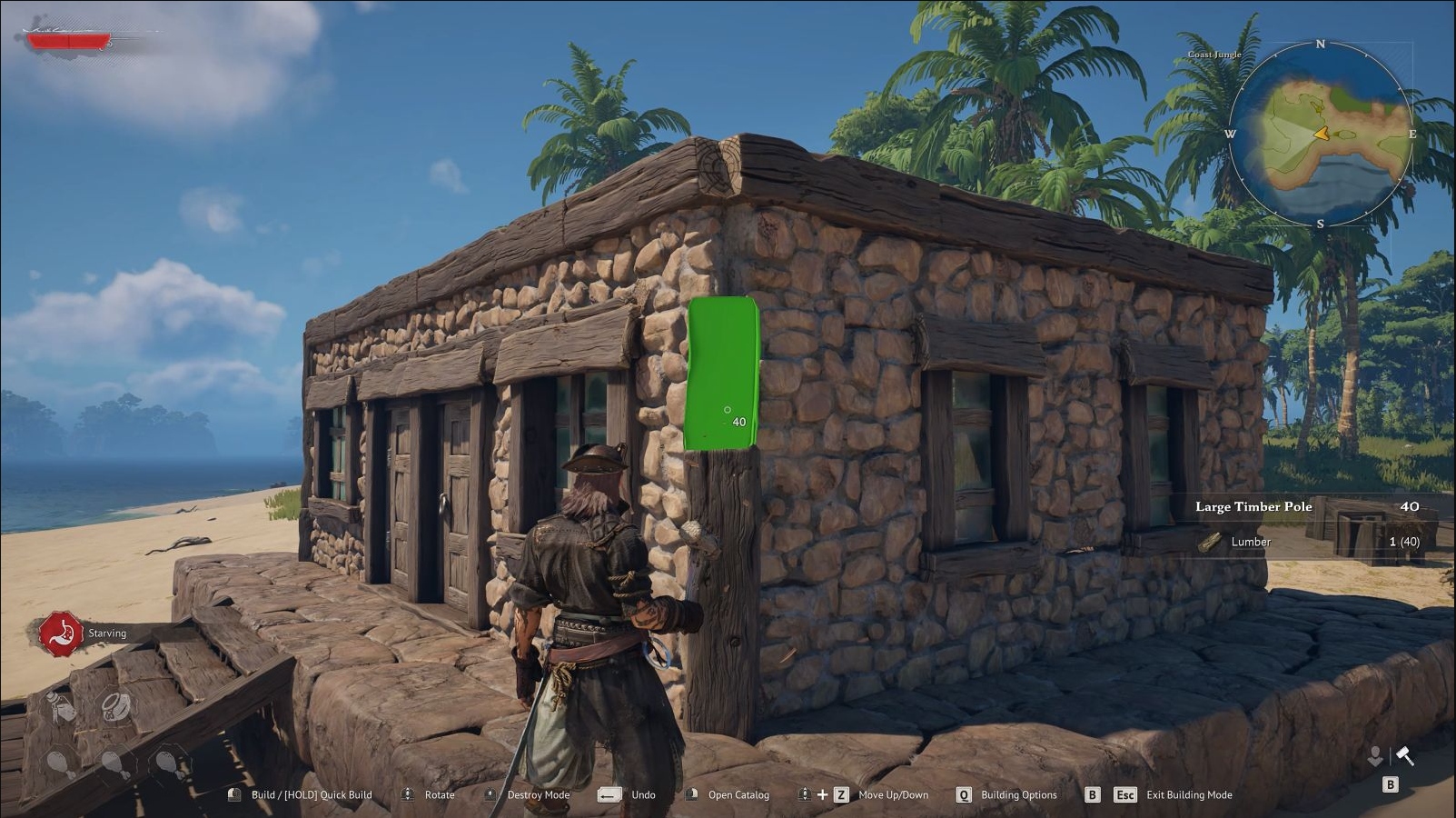 在这样的背景下,游戏的陆地建造玩法便显得顺理成章。它延续了大家熟悉的生存建造核心,从基础资源的收集、营地的搭建,到科技树的逐步解锁,每一项内容都需要玩家亲力亲为。你可以从最简陋的茅草屋起步,一点点升级成固若金汤的海盗要塞;搭建储物仓囤积掠夺来的宝藏,打造烹饪台制作饱腹的食物,甚至建造专属工坊,为后续打造战船、锻造装备筑牢基础。