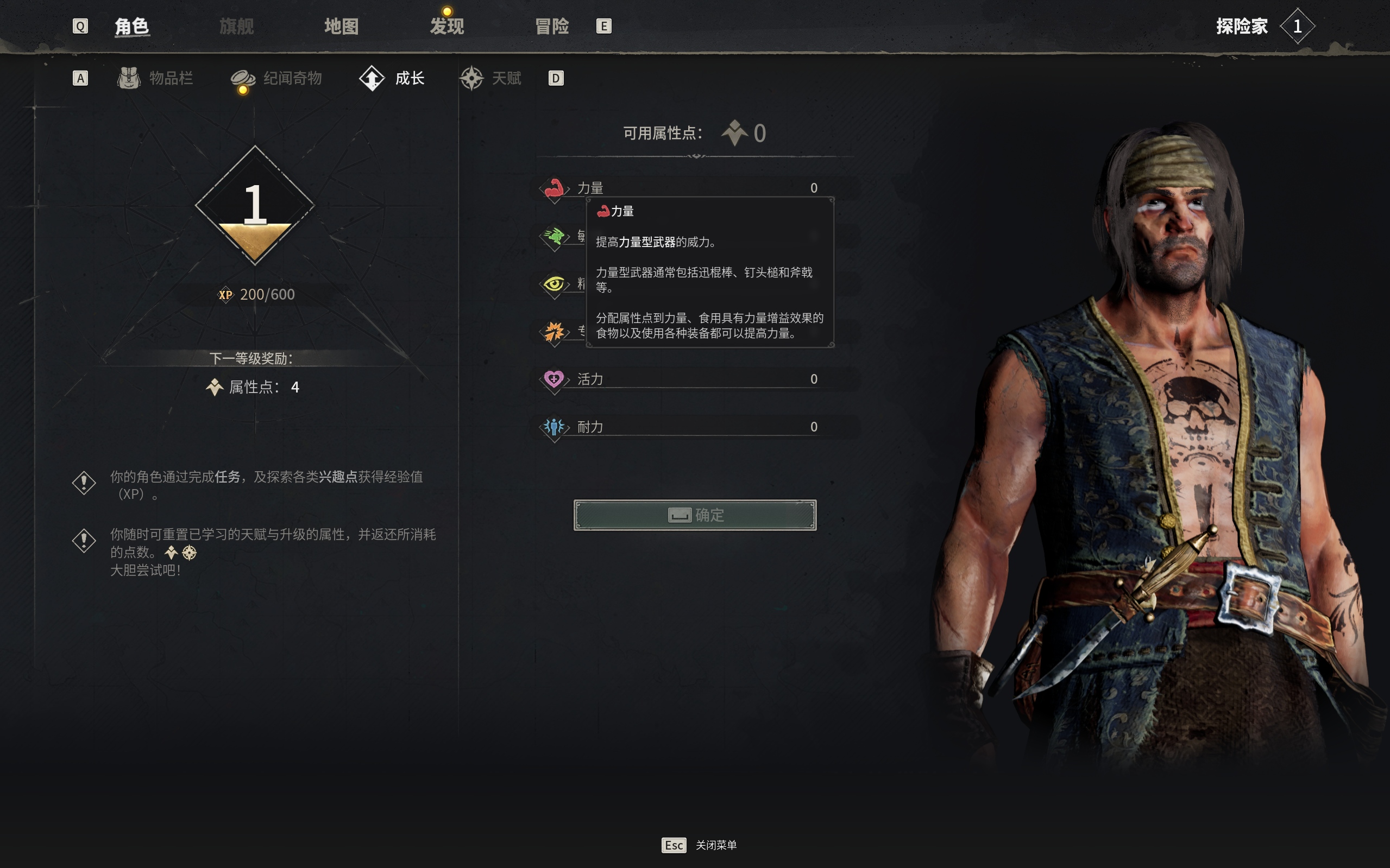 除了外部搭建自己的海盗堡垒,游戏在角色的成长上也有着丰富的可探索内容。总体而言,属性与天赋系统相辅相成,在提供自由度的同时,让玩家走出专属的进化路线。