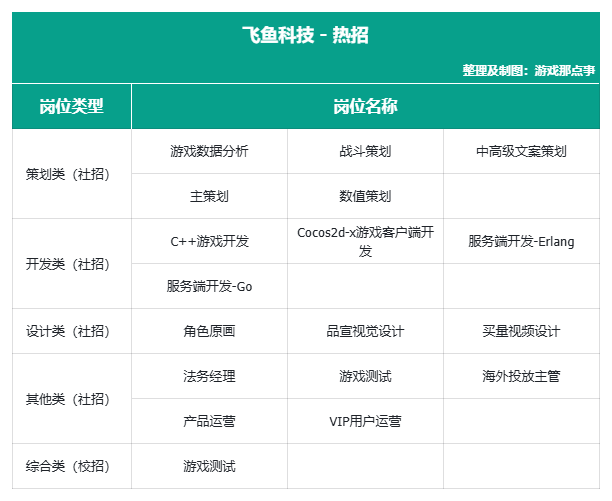 飞鱼科技代表作《保卫萝卜》系列、《神仙道》等,覆盖塔防与回合制。热招岗位涵盖策划、开发、设计及运营方向,岗位类型多样,偏重研发与策划核心岗位。