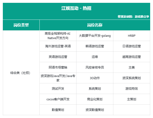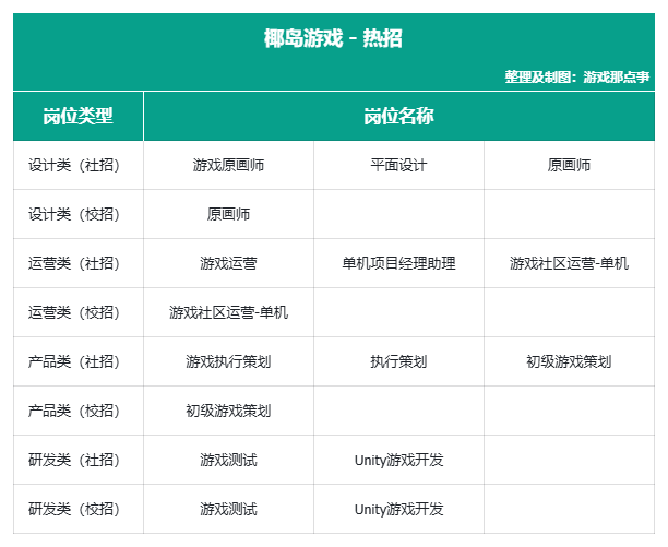 以下为游戏那点事整理的各地区热招岗位信息,部分内容可能存在滞后,请以各公司官网最新招聘信息为准。