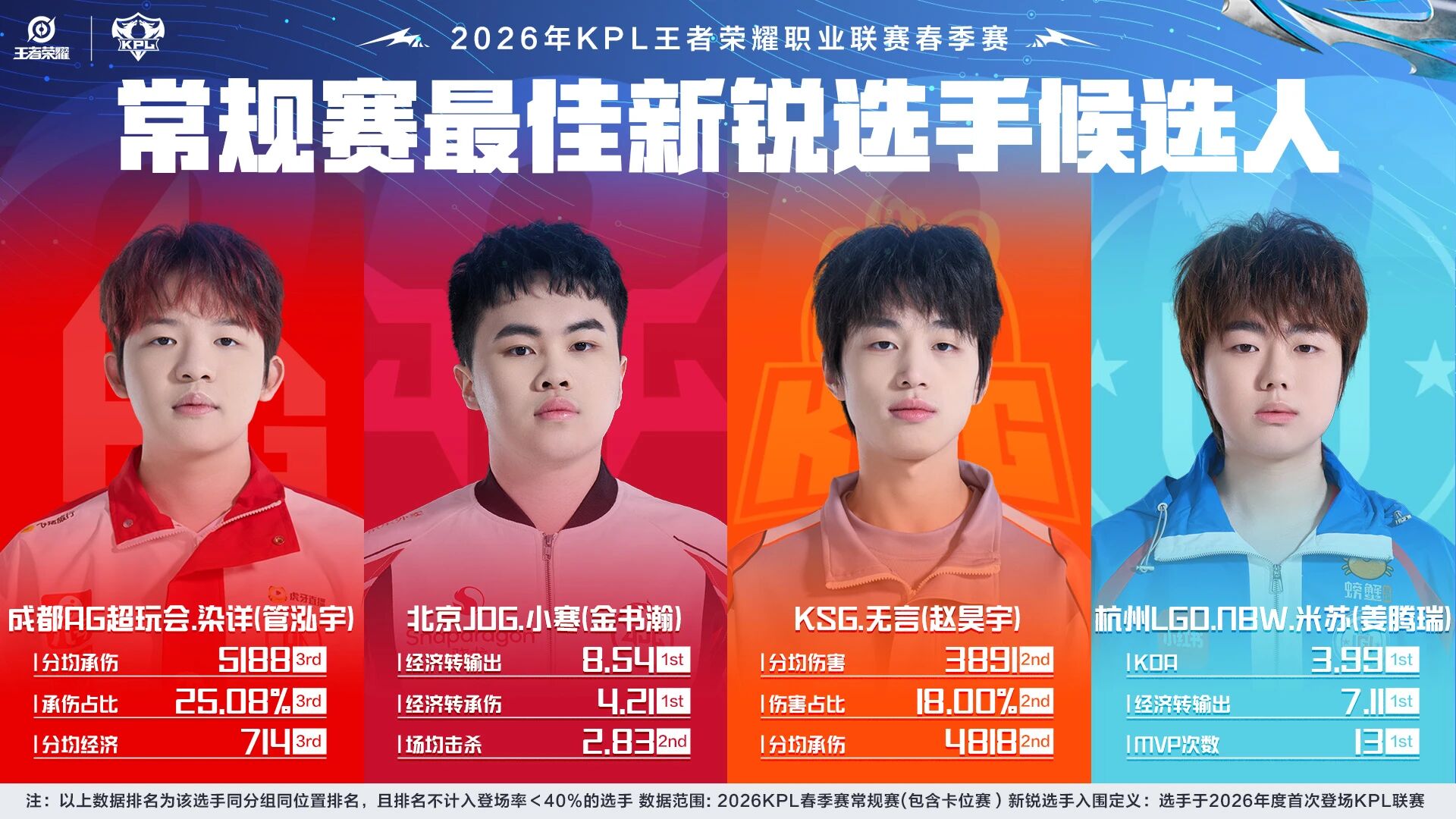 年轻的选手在这次春决中的作用格外突出,是新旧力量对抗的集中体现。除了KSG大胆启用新人,细数下来:北京JDG有最佳新锐小寒,杭州LGD.NBW迎来新人米苏后,经历了两场巅峰对决;重庆狼队里也有刚迎来KPL首秀一周年的信。凭着亮眼的表现,他们很快都成了各自战队里的热门选手。