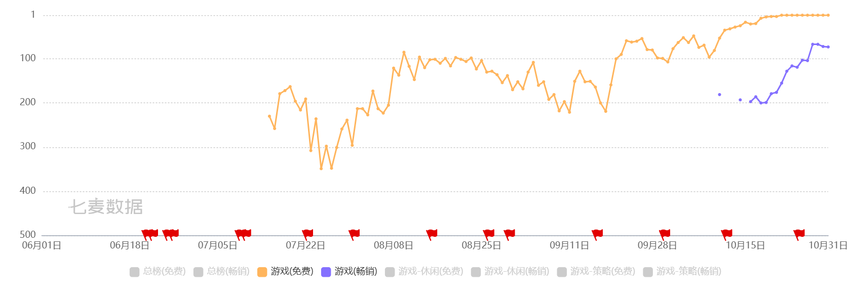 据七麦数据,《圣魂纷争》在上线后登上了iOS游戏免费榜首,畅销榜上也两度到达Top11的好成绩。给冰川网络的转型注入了一剂强心药。