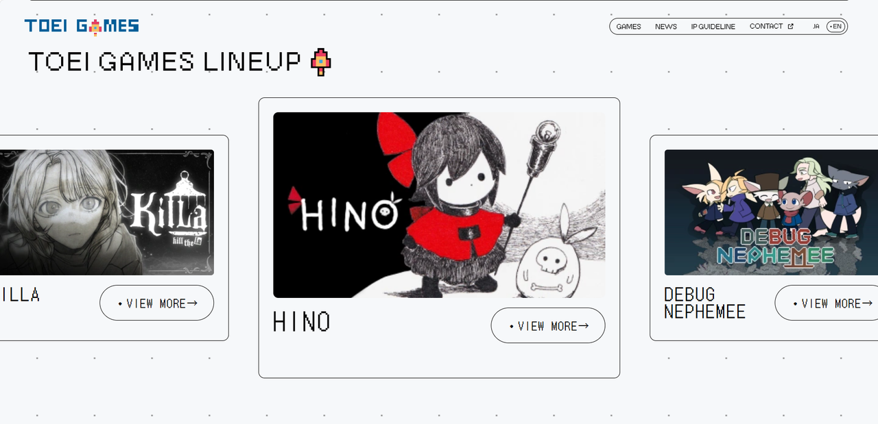 根据目前披露的资料,参与合作的工作室多数处于初创阶段,推出的也基本是他们的首部产品。不过,这些团队与它们的项目并非毫无声量。例如,《HINO》与《KILLA》的工作室就曾分别带着项目,在2023年与2024年的TGS(东京电玩展)等独立游戏展会上亮过相。它们展现的创意与潜力,或许是东映游戏选择与之携手的原因之一。