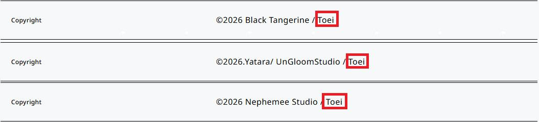 一个值得关注的细节是,官网显示这些游戏的版权由开发工作室与东映游戏共同持有。