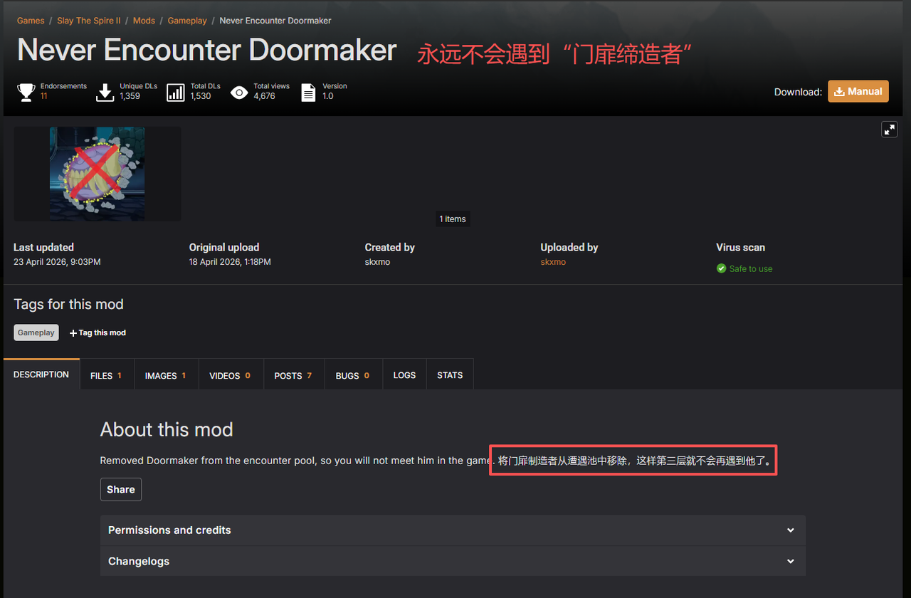 (以至于有玩家做出了“永不见门”的Mod)