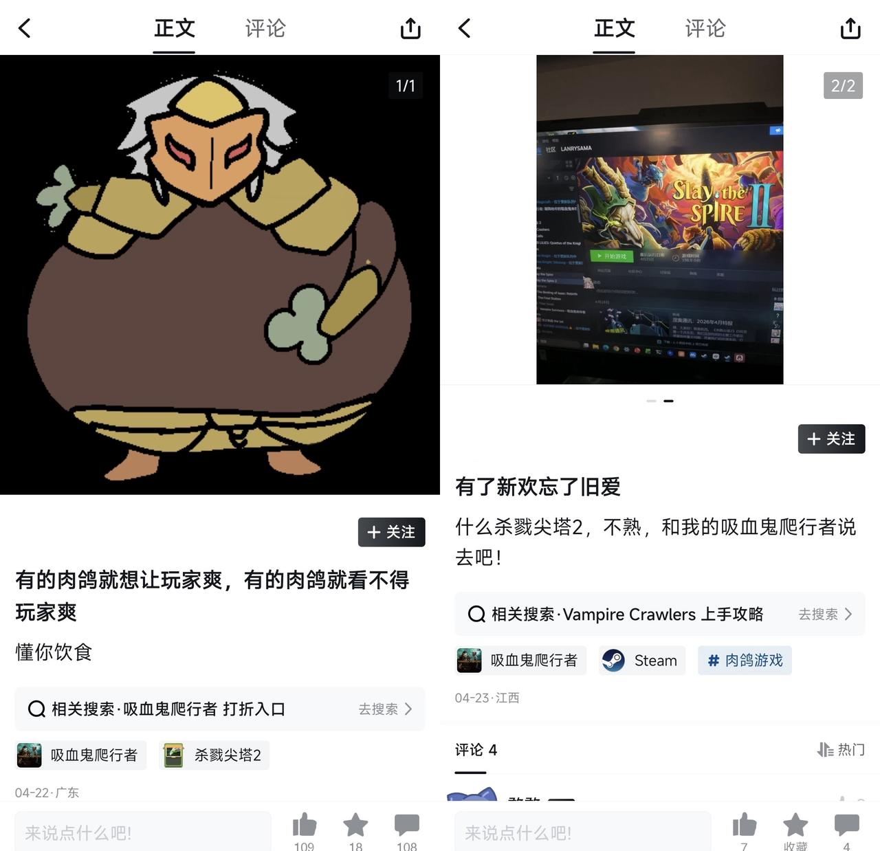 也因此,在《吸血鬼爬行者》的相关社区中,常常能见到玩家将两款游戏放在一起对比玩梗,以此调侃或发泄情绪。