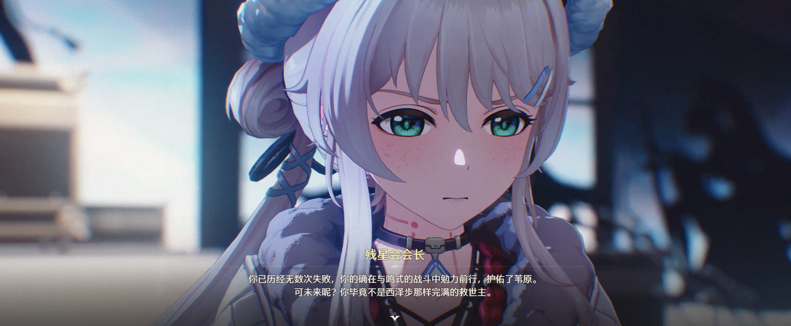 二人携手制服达妮娅后,在度过危机的间隙,绯雪与漂泊者之间产生的一段关于“救世主”的探讨,也是我认为3.3版本文戏的点睛之笔。