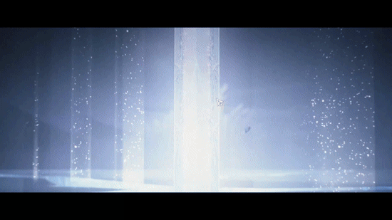 二段大的演出逻辑也同样流畅:先是摇铃特写,紧接着抽刀打出碎屏,收刀时镜头迅速拉远,呈现巫女静立于冰树与圆月之下的意境画面,一阵粉樱飘落,大世界场景方才复原。