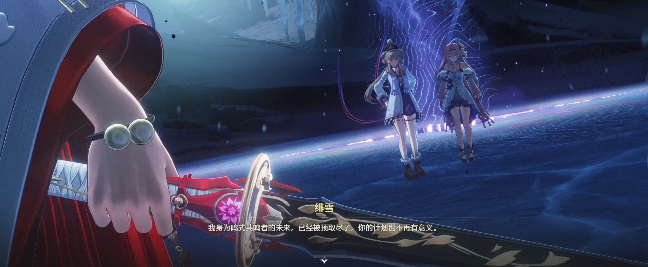 达妮娅的后续如何有待下回分解,绯雪这边则是做出了自己的选择:她不齿与鸣式为伍,动用“预取身”的预知能力,将自身未来沦为鸣式共鸣者的全部可能性提前透支殆尽。