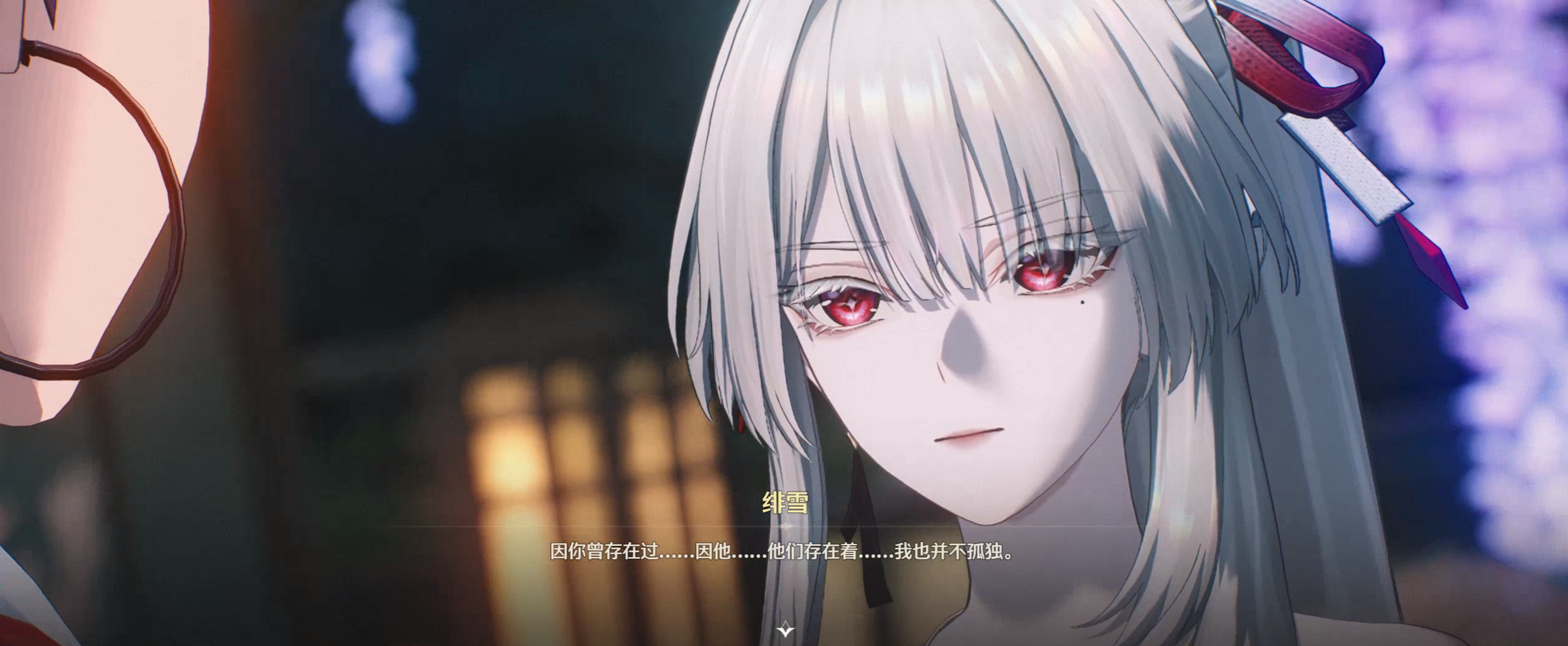 面对这些夹杂着希冀与怨毒的重压,绯雪全盘接纳了“往人”的宣泄,甚至因此对“如果能得到更多力量去拯救他们”产生了执念。而这丝真实的人性裂痕,成为了残星会会长蛊惑绯雪的可乘之机。