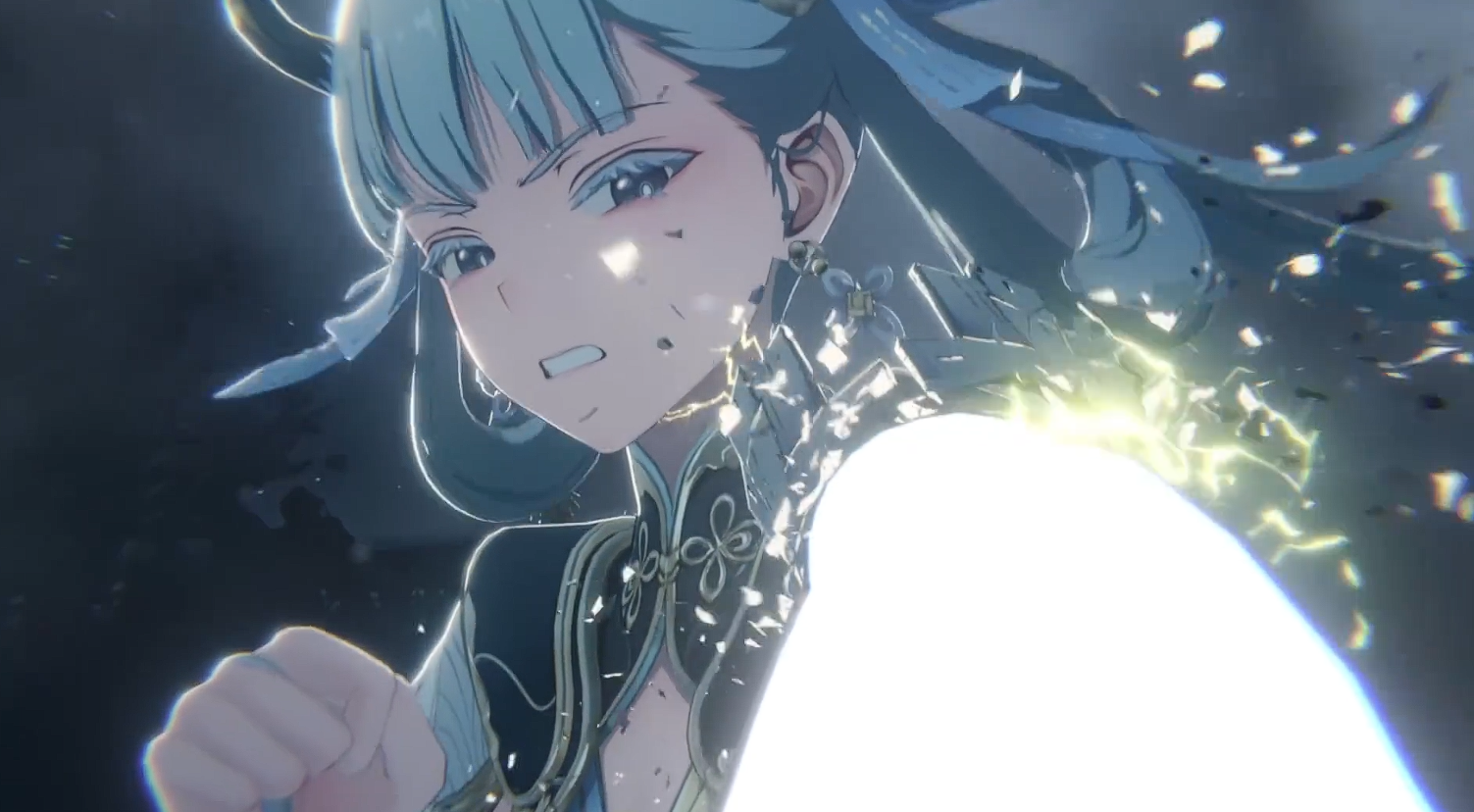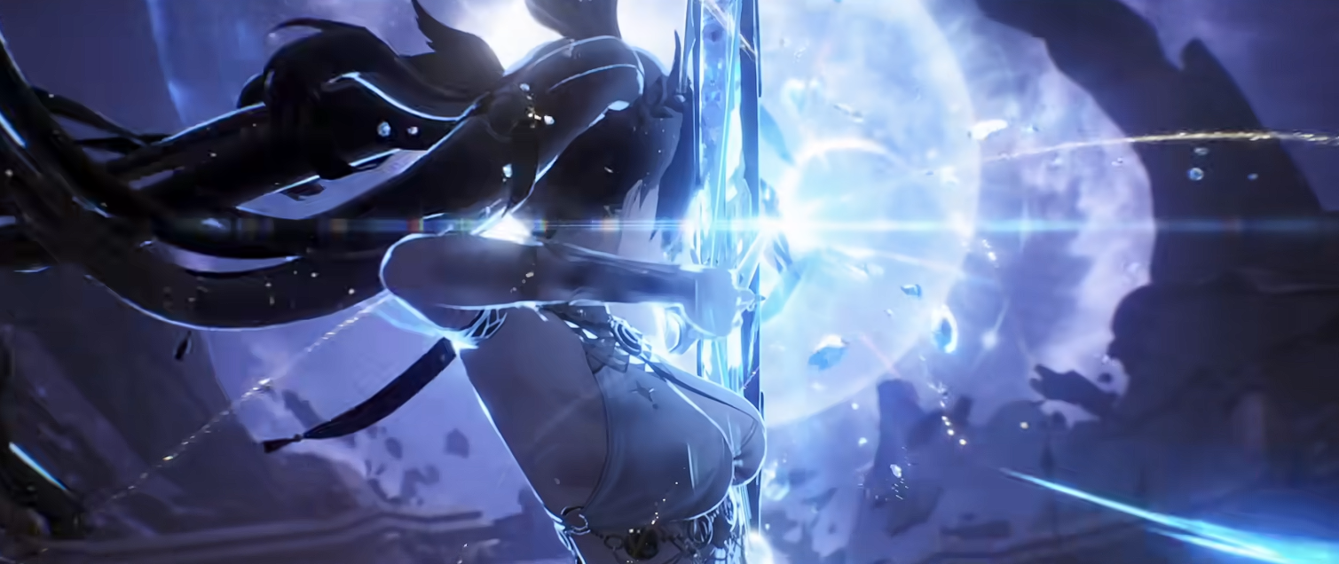 切换至“预求身”形态时,镜头以电影式特写聚焦于拔刀瞬间,服饰也转为通体冰蓝,太刀挥斩可凝出冰树,并于短暂延迟后碎裂,兼具张力与美感。
