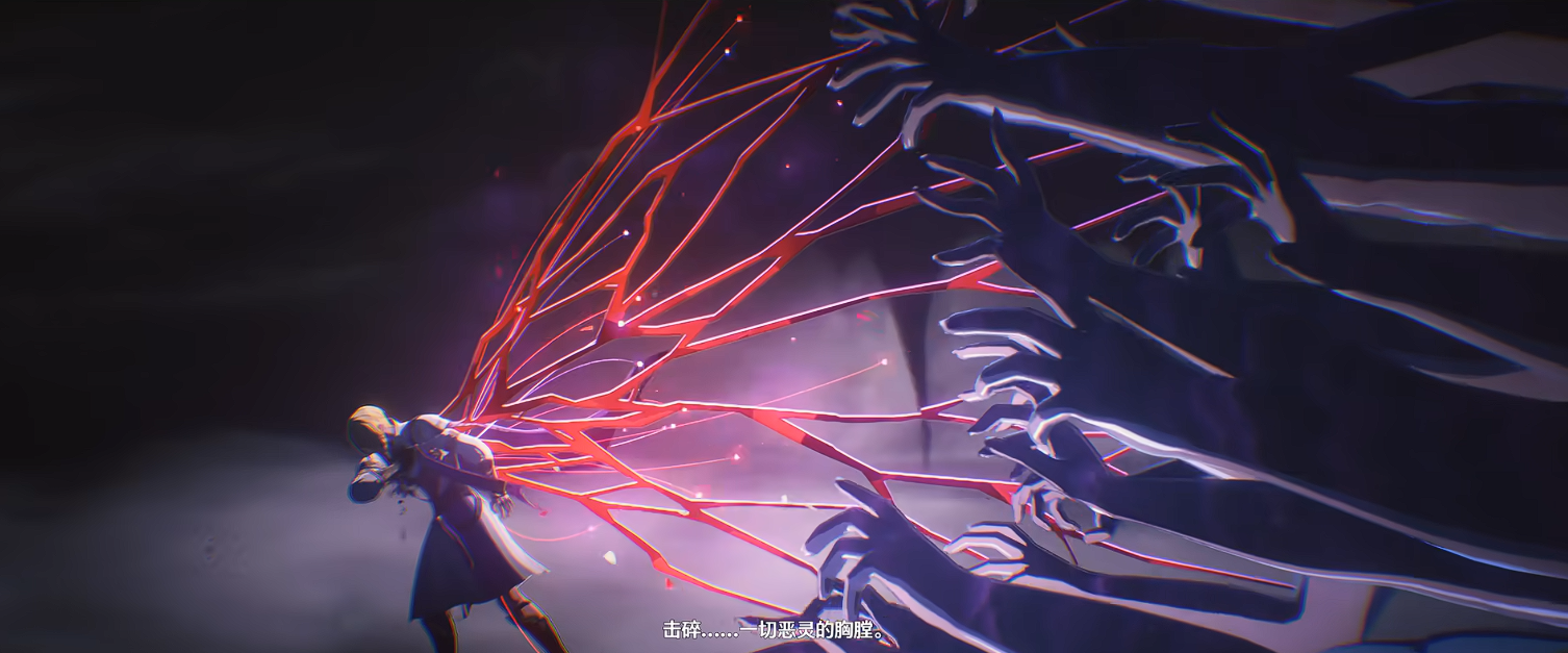 在习惯了不断透支自己、独自背负伤痛的绯雪看来,“救世主”是一条注定孤独且痛苦的无尽长路。越是憧憬拯救,越容易深陷泥淖。她甚至下意识地以为,眼前这个总是与胜利同行的漂泊者,一定也是怀揣着某种傲慢的自信,在独自吞咽着拯救世界的苦果。